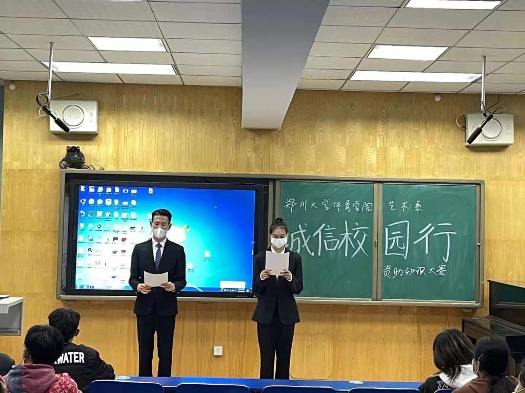 为持续深入贯彻落实全国全省高校思想政治工作会议和全国全省教育大会精神,积极宣传党和国家的学生资助政策与成效,艺术系于11月17日晚上7点20分在阶梯教室开展诚信校园行学生资助竞赛,20级学生纷纷响应,活动有十二支代表队伍共36人参加。