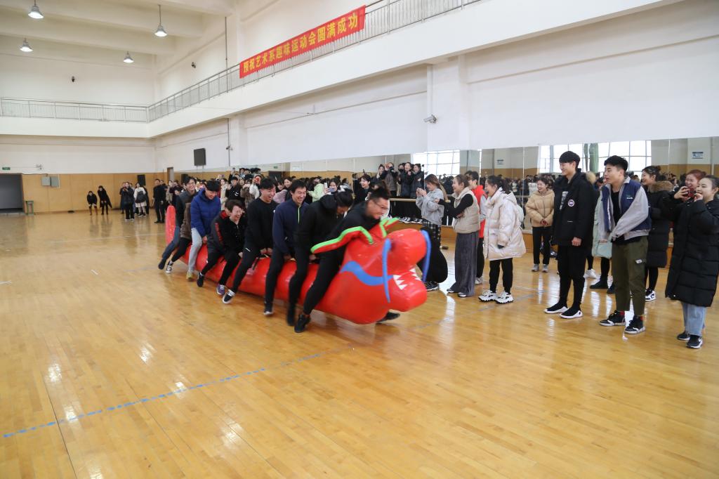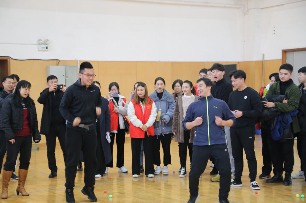 为丰富大学生的课余生活,深化我院体育特色,展现我系师生良好的精神风貌和充满斗志的活力,增强我系师生的竞争意识和群众凝聚力,融洽师生感情,使学生得到全面发展。引导大学生树立社会主义荣辱观,将爱国热情自觉转化为努力学习,奋发有为的实际行动。展示大学生团结和谐,文明健康,积极向上的精神风貌。2019年12月11日中午12点30分,艺术系在体育舞蹈馆举办了以“团结奋进”为主题的全体师生趣味运动会。教师代表及学生代表共计二百余人参加了此次趣味活动。