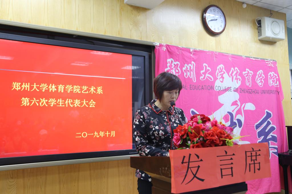 会议第一项,艺术系党总支书记赵环致开幕词。赵书记向我系学生提出坚定理想信念,弘扬时代精神;勇于创新实践,展现青年风采;坚持与时俱进,争当先进模范三方面要求,强调时刻牢记“厚德 博学 拼搏 创新”的校训,从自身做起,从现在做起,“高举团旗跟党走,勇担使命承重任”,为我系团学建设作出贡献。随后,艺术系第五届学生会主席孙文华做了2018-2019年度工作总结报告,主要涉及加强结构组织建设、积极组织和配合学院开展一系列学生活动、加强内部管理,促进工作推进三方面。最后,艺术系第六届团总支学生会换届大会在缓缓响起的国际歌歌声中进行。