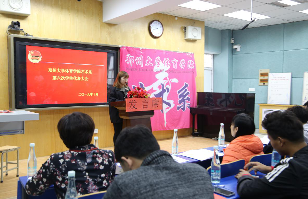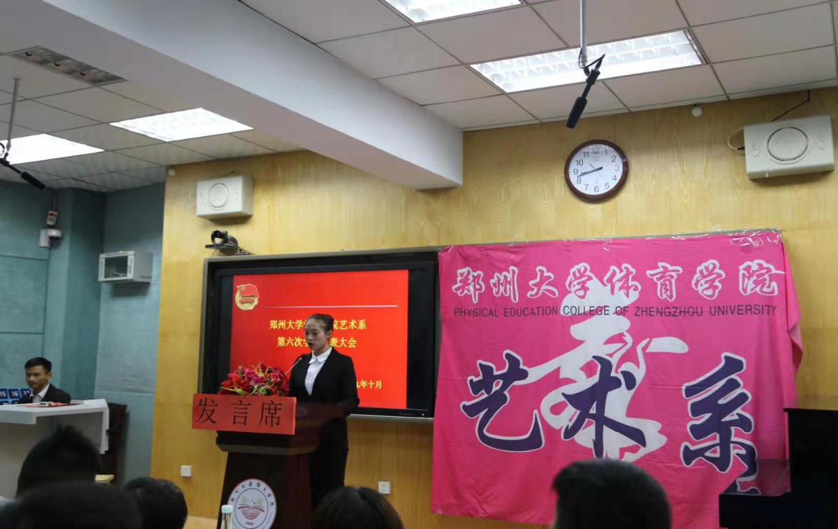2019年10月16日中午12:30,艺术系第六届团总支学生会换届大会在教学楼101召开。出席此次会议的有艺术系党总支书记赵环、系主任孙爱景、系团总支书记李中山、系办公室主任陈利峰、系教学秘书王铮、音乐理论教研室主任冯蔚然、音乐表演教研室主任何堃、体操教研室主任黄波、系辅导员董小儒、陈思琪、系办公室秘书徐若男、院学生会和各系学生会代表以及16、17、18级各班学生代表。伴随着庄严的国歌声,本次大会拉开序幕。
