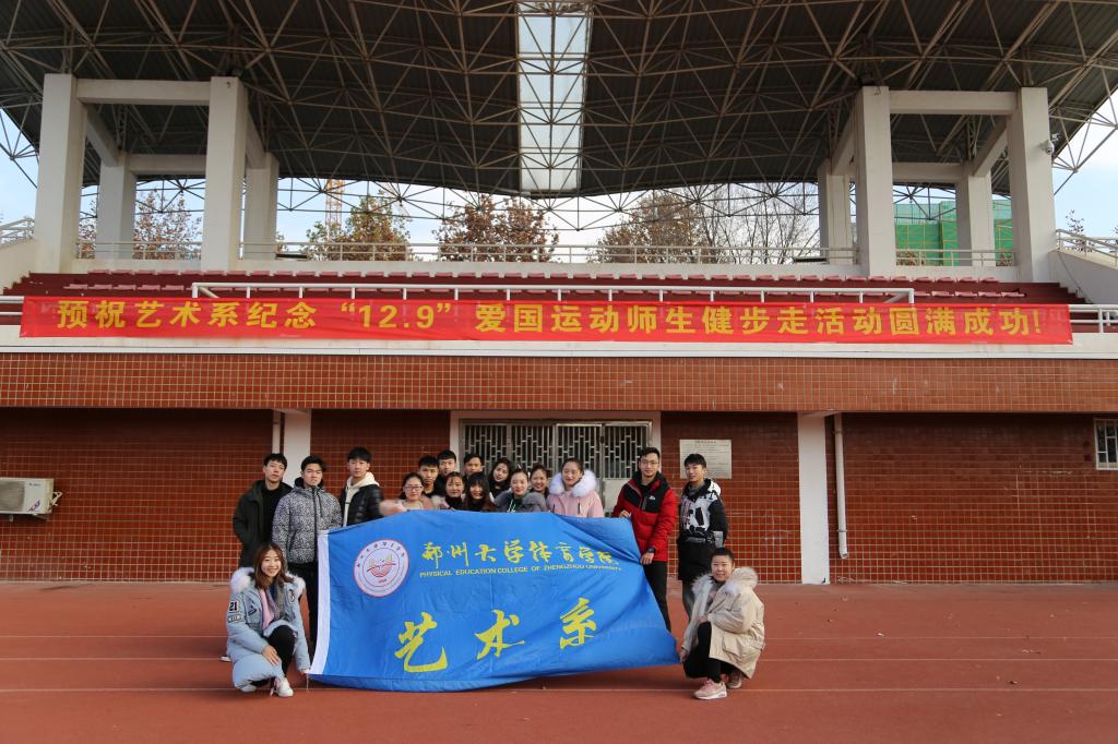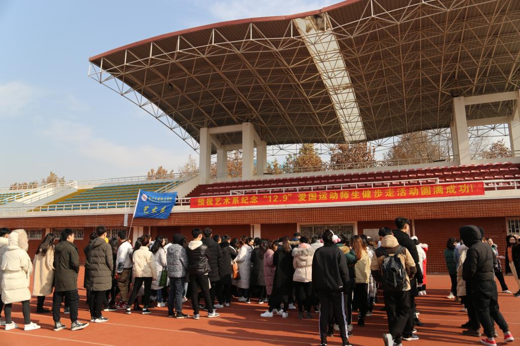 在“一二·九”抗日爱国运动83周年之际,为激发师生爱党爱国情怀,弘扬爱国主义精神,进一步贯彻落实全民健身条例,引导广大师生积极参与体育健身活动。艺术系全体师生于12月11日中午12点15分在学院操场开展了纪念“12.9”运动的师生健步活动。