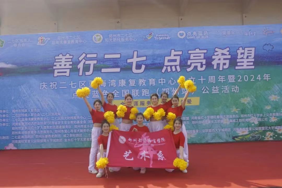 2024年3月30日下午,“关注孤独症点亮蓝色”全国城市联跑活动在郑州火车站西广场热烈开幕。此次活动旨在唤起社会对孤独症问题的关注,提高公众对孤独症患者的理解和接纳度。我系艺术团啦啦队成员们也参与其中,在郑州大学南校区操场用热情的开场舞表达了对孤独症群体的关爱与支持。