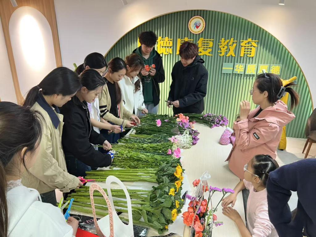为更好的践行雷锋精神,响应院团委学雷锋月的号召,3月22日周六上午九点,我系部分志愿者来到惠济区厚德康复教育中心,协助举办一场插花公益活动,带领小朋友与家长一起了解插花文化,插花是一种将自然之美与人类审美相结合的表现形式,它不仅仅是一种装饰,更是一种生活态度和审美追求的体现。