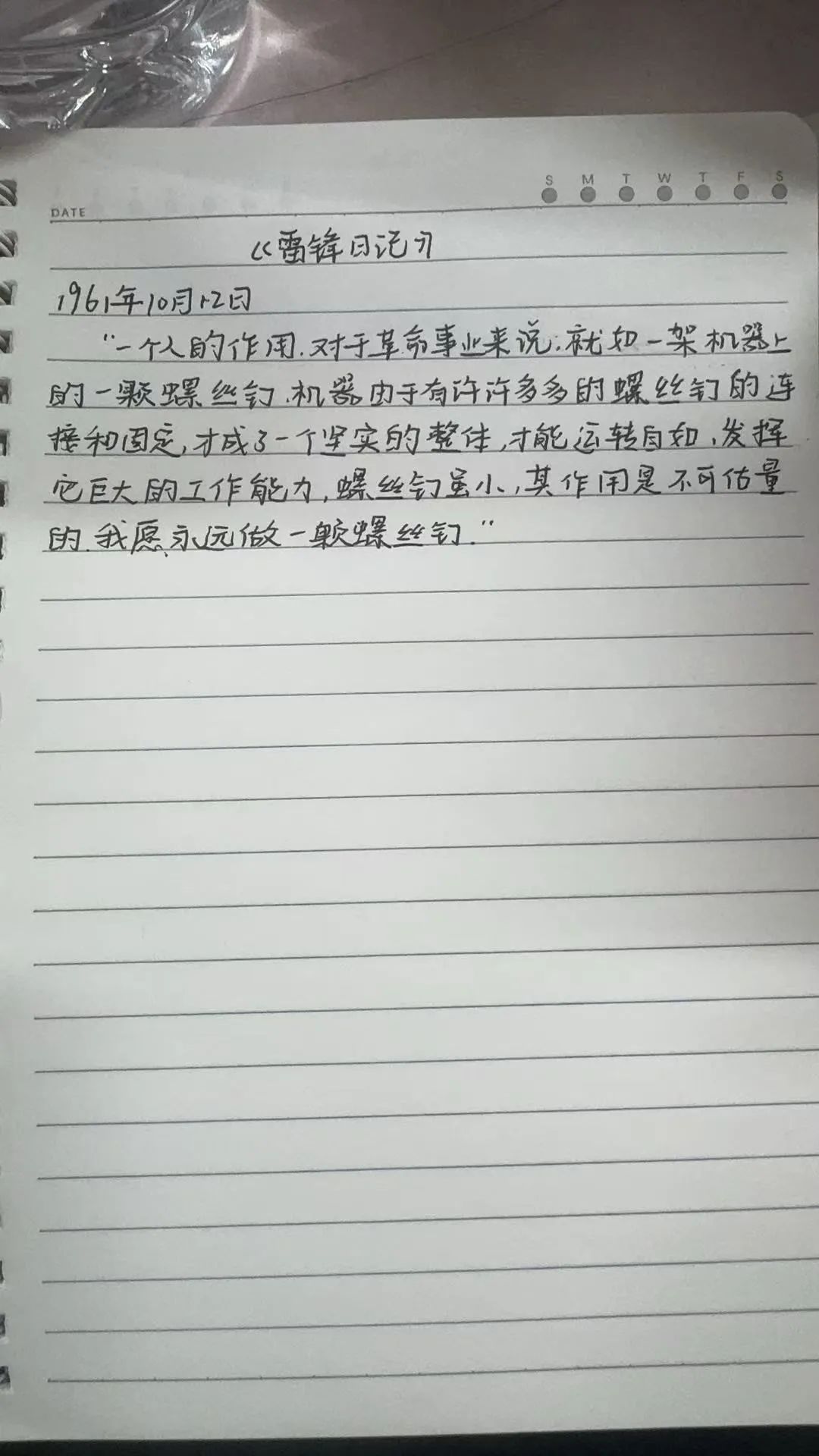 以下是几位同学摘抄的雷锋日记: