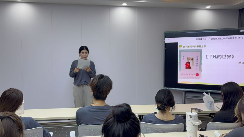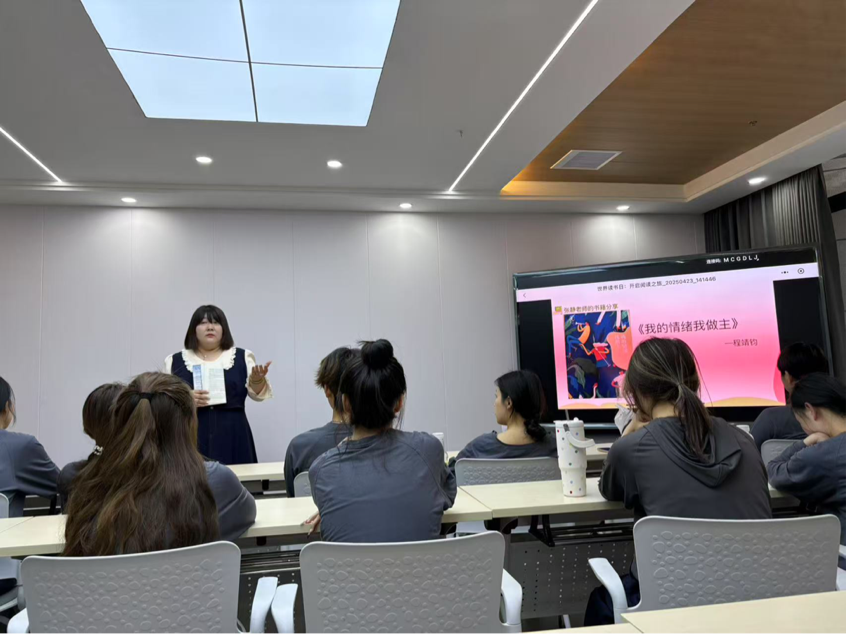 在活动期间,张静老师向同学们分享了最近看的一本书,叫做《我的情绪我做主》,并教授了同学们很多关于掌控情绪方法,紧接着就是同学们踊跃上台分享自己所读过且觉得有意义的书籍。如《平凡的世界》、《小小的我》、《被讨厌的勇气》等,得到了大家的认可。
