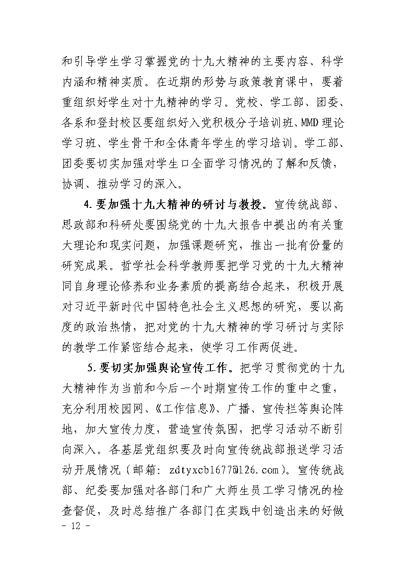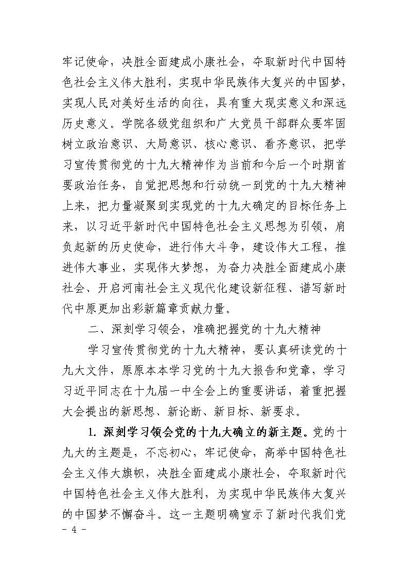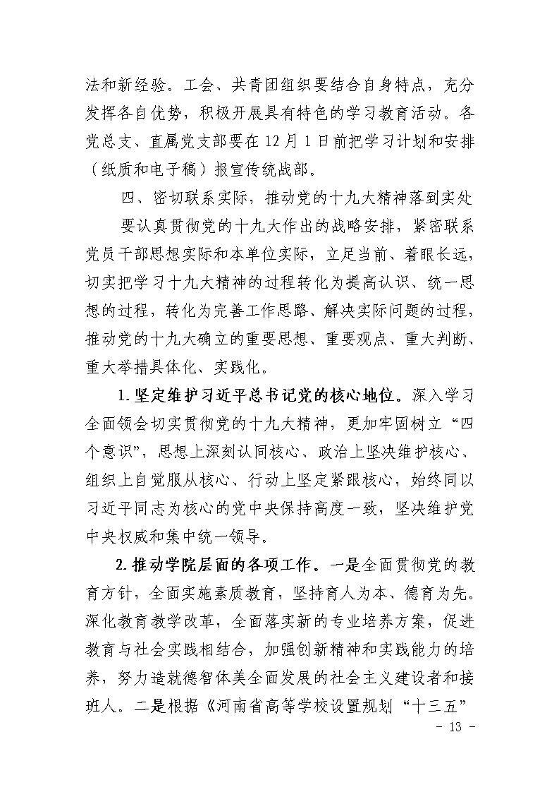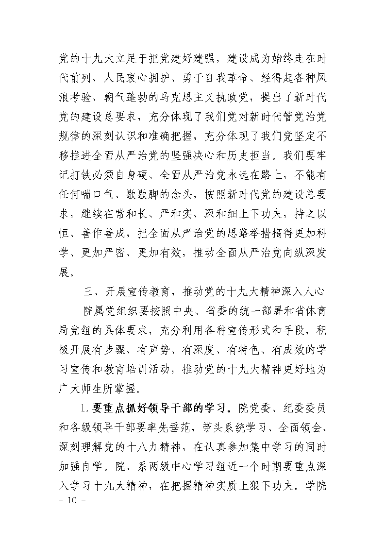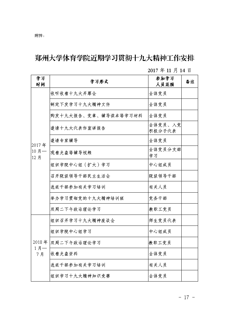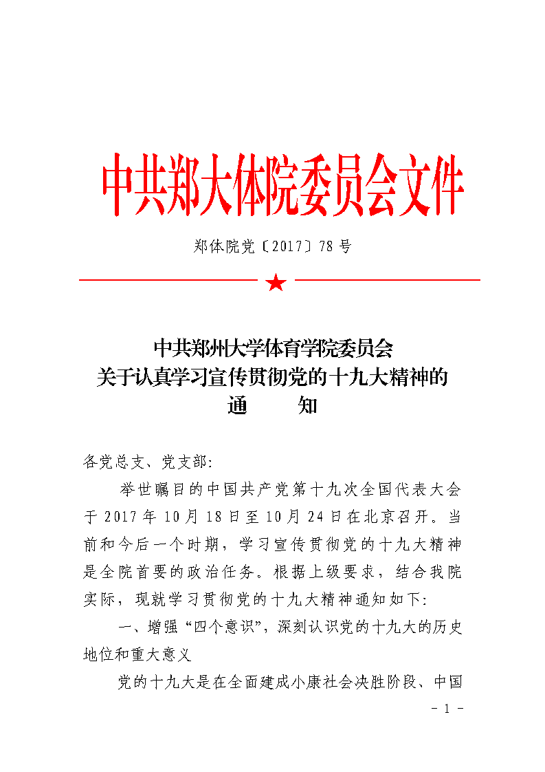 中共郑州大学体育学院委员会关于学习宣传贯彻党的十九大精神的通知
