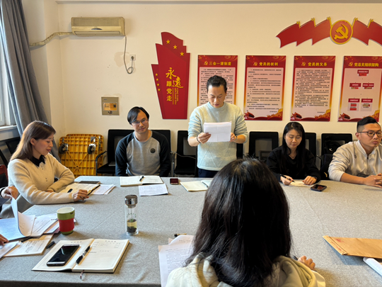 会议严格按照党组织接收预备党员的程序进行。首先,冯蔚然老师宣读入党志愿书,表达了对党的深刻认识、入党决心以及对党的事业的忠诚与奉献意愿。随后,入党介绍人徐若男老师、岳巍老师分别对冯蔚然老师的思想、工作和学习表现进行详细介绍,充分肯定其在各方面的先进性与模范带头作用。其他党员同志也纷纷发言,对冯蔚然老师的综合素质和入党动机展开深入讨论,认为冯蔚然老师政治立场坚定,专业能力突出,在教学与师生服务中表现卓越,具备党员标准。最后对发展对象能否入党采取无记名投票,经投票表决,支部大会一致同意接收冯蔚然老师为预备党员。
