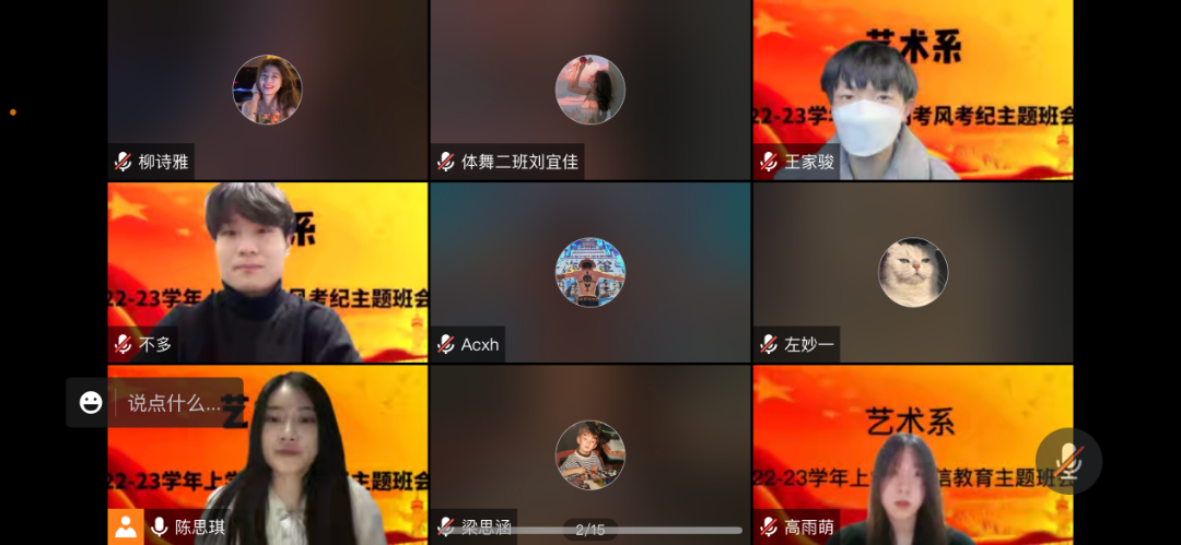 11月28日晚上8点,我系通过腾讯会议召开2022—2023学年第一学期期末总结大会,会上专门强调诚信教育、考风考纪、假期安全教育等内容,会议由辅导员陈思琪老师主持,2020级、2021级全体学生参加会议。