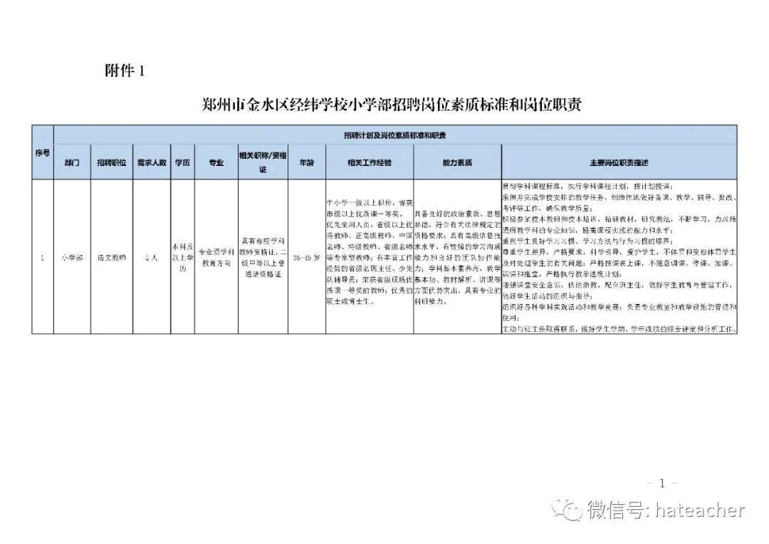 郑州市金水区经纬学校小学部2022年公开招聘公告