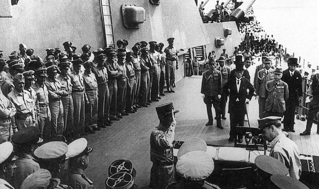 1945年9月2日,日本投降的签字仪式在停泊于日本东京湾的美国战列舰“密苏里号”上举行。