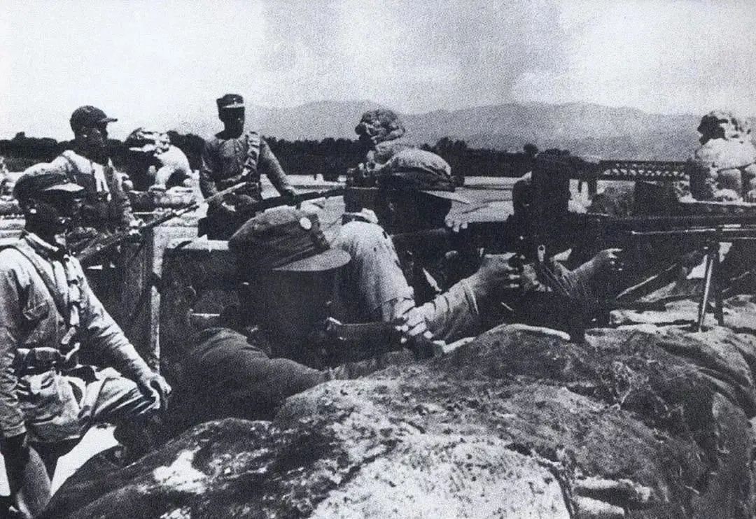 开始全面侵华。这是中国军队在卢沟桥抗击日军的进攻。
