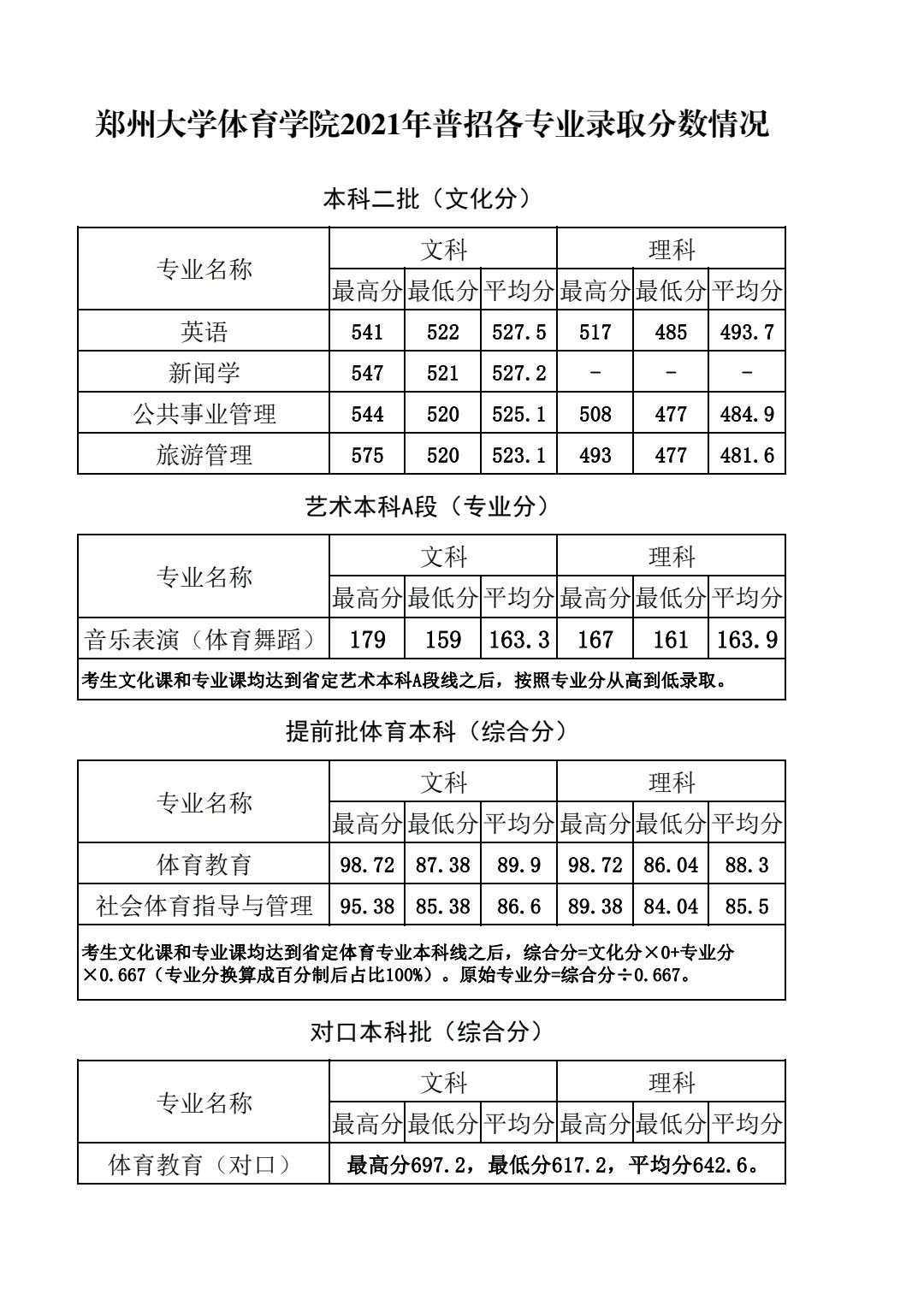 同学们,你们心心念念的2021年郑大体院各专业分数线来了!