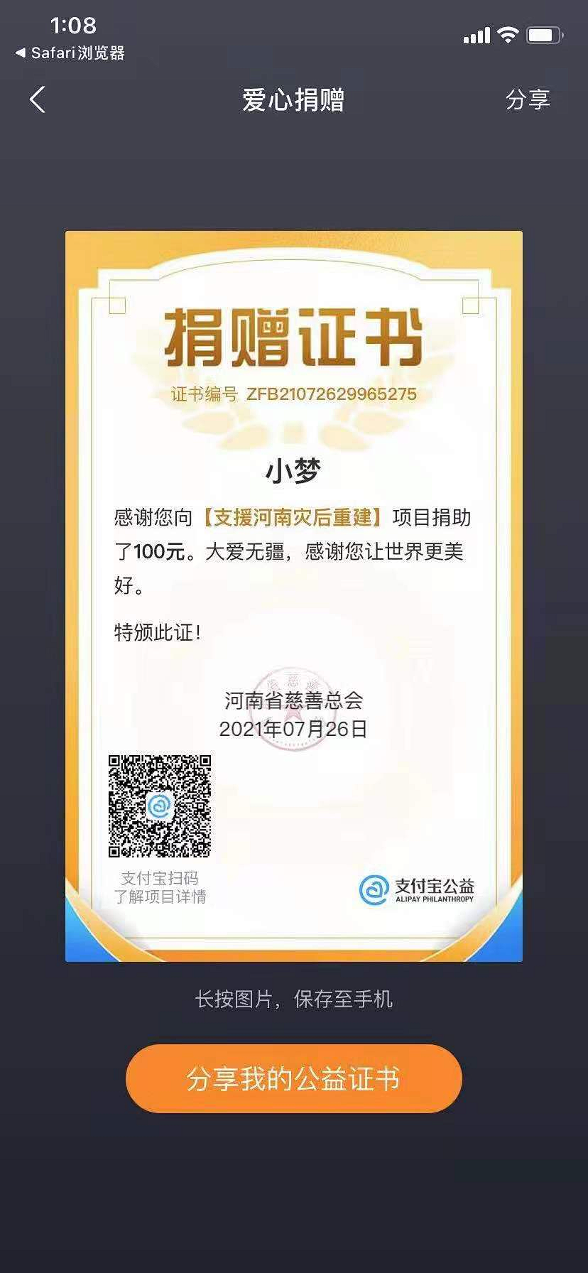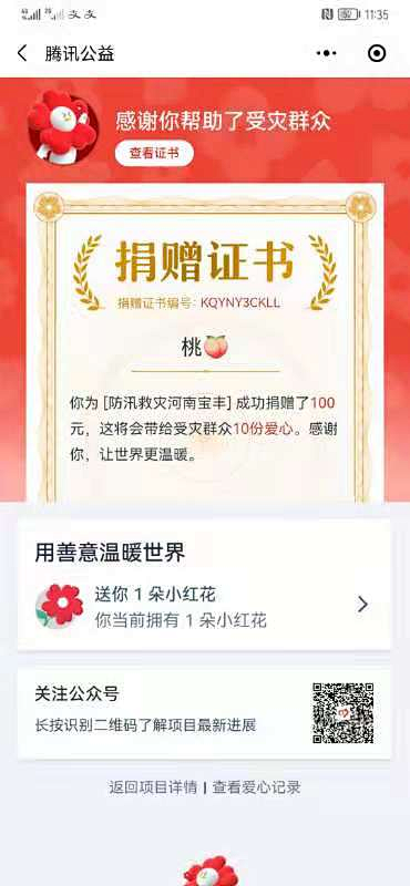 “一方有难八方支援”当得知受灾的那一刻只想尽自己最大的能力贡献一些物资 为社会 人民和自己的家乡尽一份力 我相信强再猛的洪水都冲不垮我们团结一致抗洪救灾的决心。