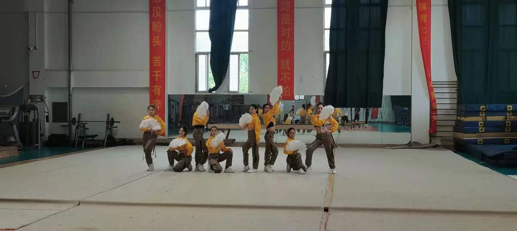 7月2日下午,我院于北体操馆进行啦啦操院队赛前测试活动,竞训处处长夏丽娟、艺术系主任孙爱景、办公室主任陈利峰、体操教研室主任黄波及我系部分老师参加此次赛前测试。