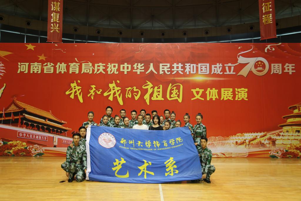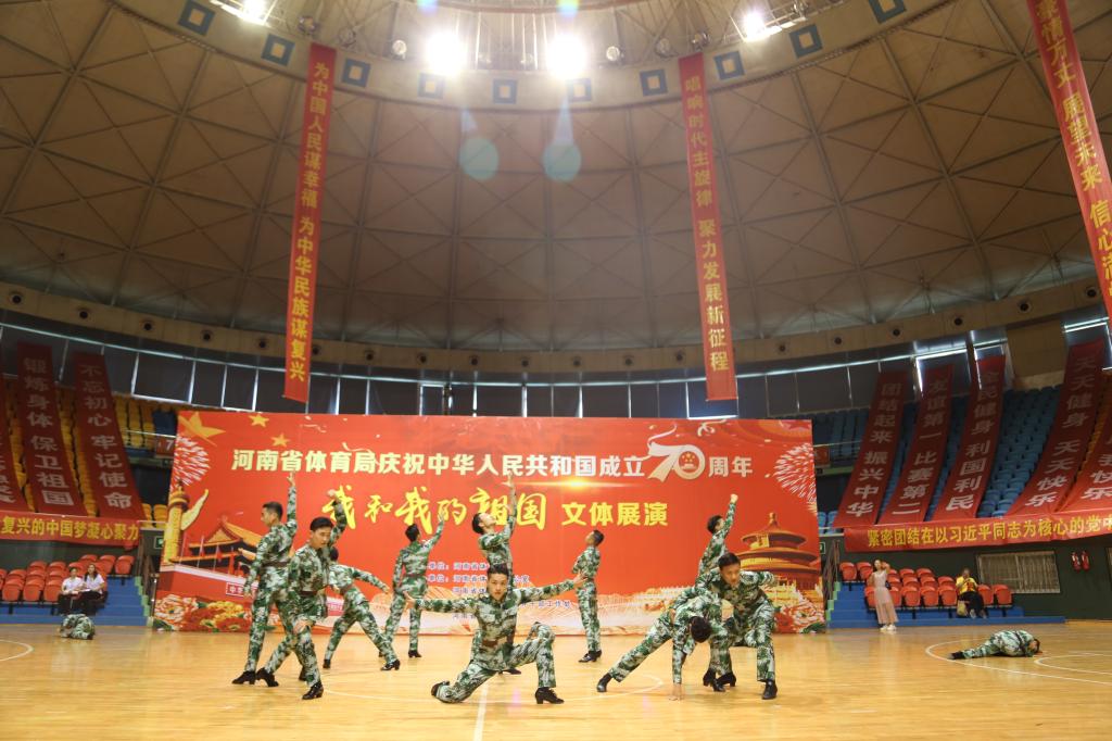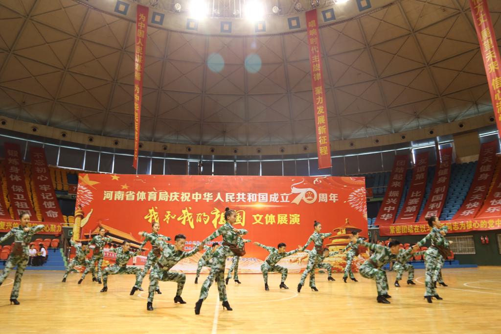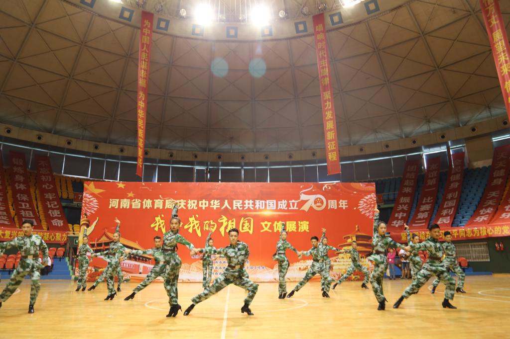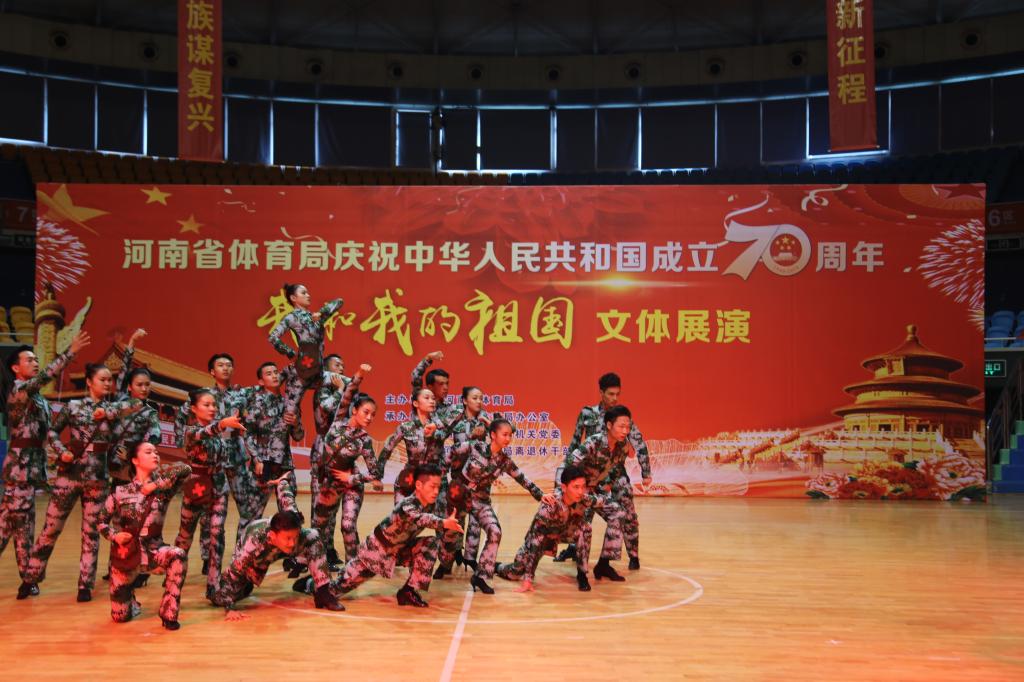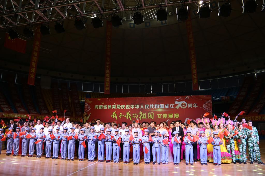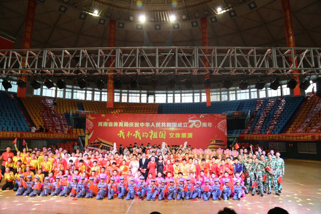 2019年9月29日,为庆祝中华人民共和国成立70周年,由河南省体育局联合河南省体育局办公室、河南省体育局机关党委、河南省体育局离退休干部工作处,在河南省体育场举办了《我和我的祖国》文体汇演。