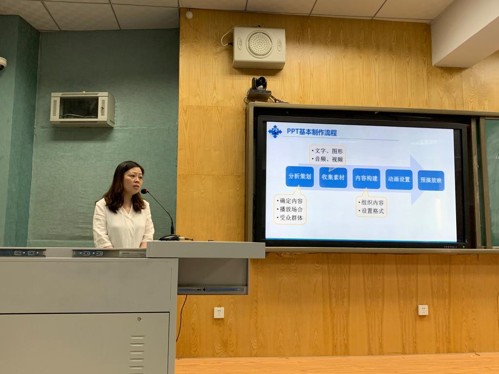 张娟老师从课件制作流程、类型为大家做了详细的讲解,对文字和图形的选择和编辑进行示范,也教授了多种图片、动画的处理技巧,为大家答疑平时制作课件时遇到的问题。张娟老师提倡要进一步提高课件内容的针对性、增强教学的吸引力,要以这次讲座为新的起点,多学习、多实践,不断提高课件制作水平,出典型、出精品。