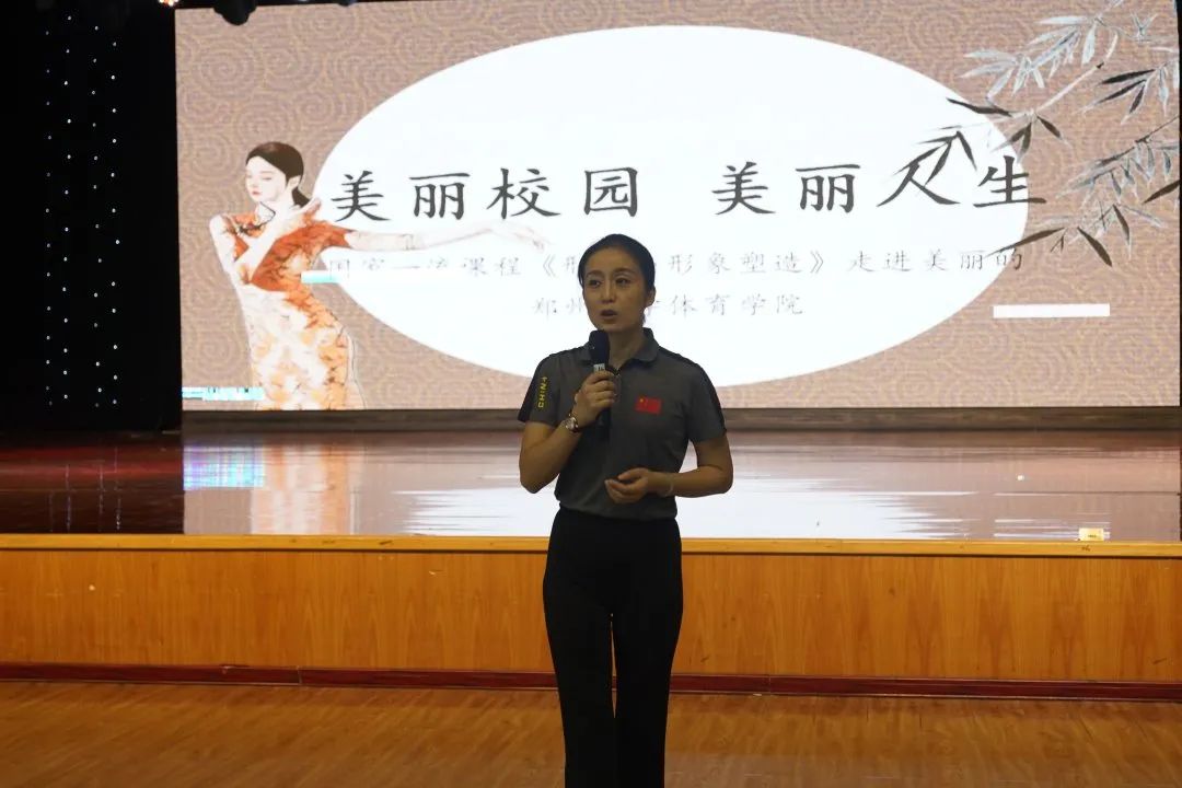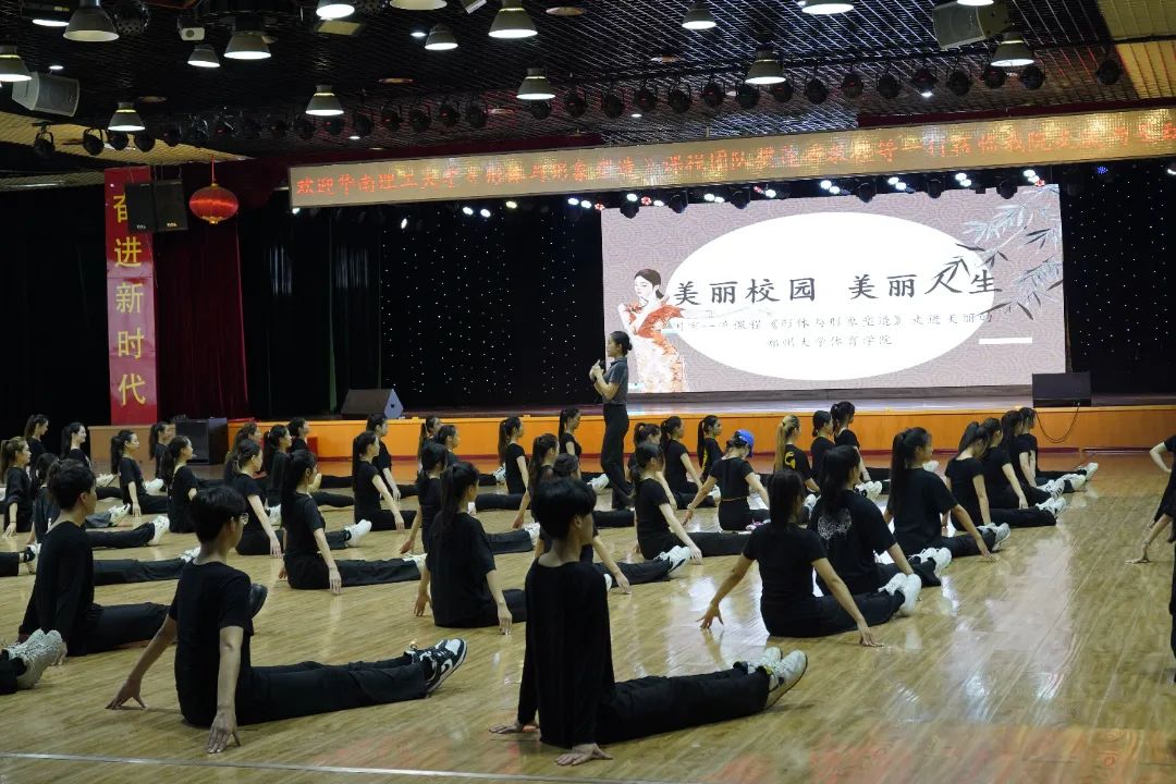 为更好推进学校大规模优质课程的开放、共享、共用与建设,由华南理工大学建设的国家一流课程《形体与形象塑造》课程团队樊莲香教授等一行莅临我院围绕《美丽校园美丽人生》为主题开展课程交流与互动,9月12日上午9:30分,我系21级全体学生在大学生活动中心参加授课。我系党支部书记邵丽君、主任孙爱景、副主任陈利峰和艺术系全体教师观摩此次课程。