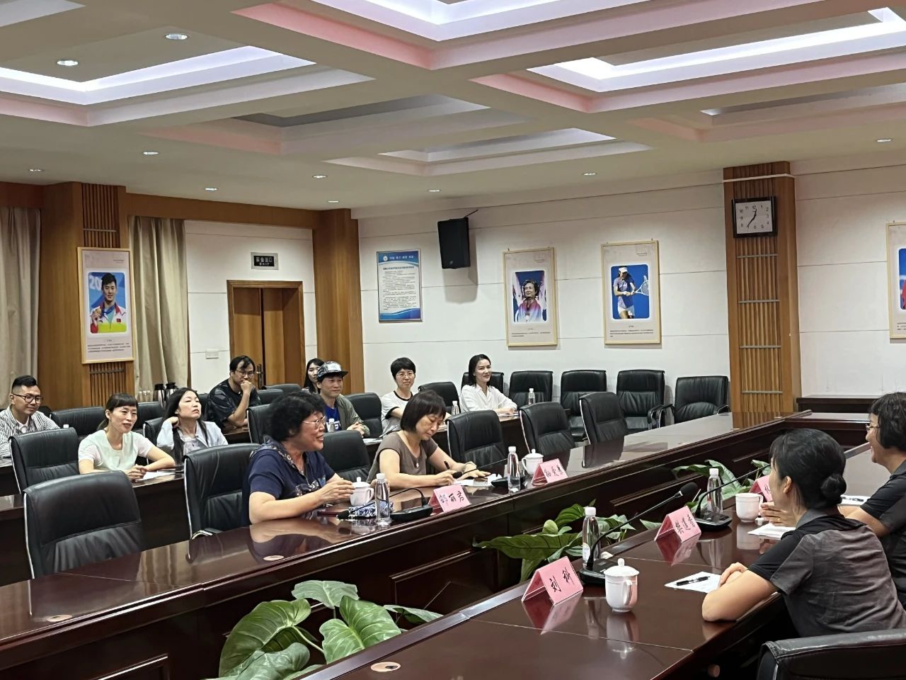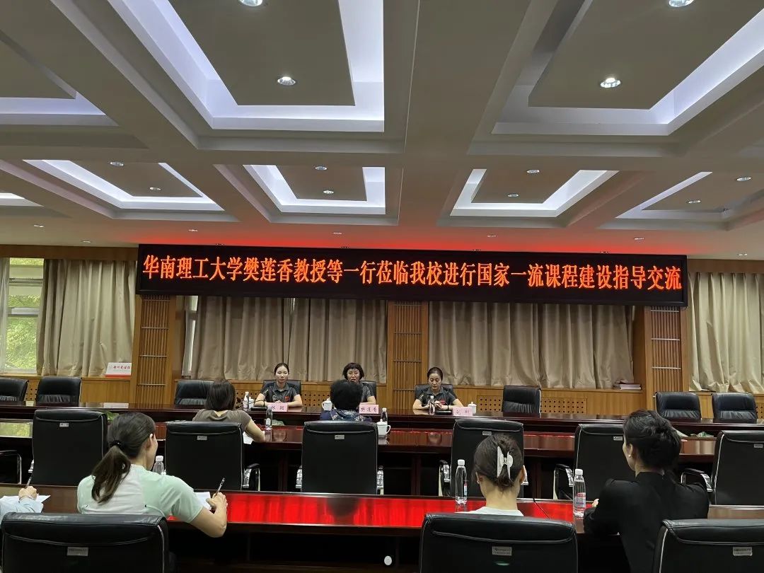 本次课程结束后,我系党总支书记邵丽君、主任孙爱景、副主任陈利峰和艺术系全体教师与华南理工大学体育学院樊莲香院长、刘科、汤海燕、林颖,在综合楼三楼会议室进行国家一流课程建设指导交流会。