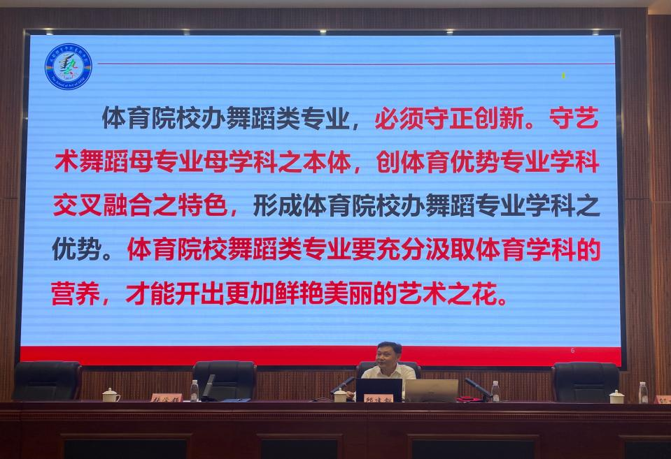 接着,邱建钢教授以“体艺融合”语境下高等体育院校舞蹈类一流专业与学科建设的思考”为题展开详细阐述。邱教授从一流学科建设与一流专业建设的根本区别、建设内涵、舞蹈类专业在体育院校的办学定位与价值、体育院校舞蹈类“双一流”专业学科建设的主动思考等方面与大家展开讨论,并强调:“体育院校办舞蹈类专业,必须守正创新守,艺术舞蹈母专业母学科之本体,创体育优势专业学科交叉融合之特色,形成体育院校办舞蹈专业学科之优势。”接着,邱建钢教授以“体艺融合”语境下高等体育院校舞蹈类一流专业与学科建设的思考”为题展开详细阐述。邱教授从一流学科建设与一流专业建设的根本区别、建设内涵、舞蹈类专业在体育院校的办学定位与价值、体育院校舞蹈类“双一流”专业学科建设的主动思考等方面与大家展开讨论,并强调:“体育院校办舞蹈类专业,必须守正创新守,艺术舞蹈母专业母学科之本体,创体育优势专业学科交叉融合之特色,形成体育院校办舞蹈专业学科之优势。”