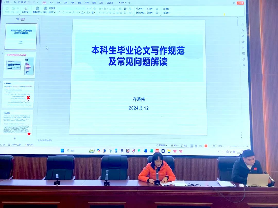 为提高我系毕业论文的质量,严控论文质量关,3月12日我系邀请齐燕伟博士在图文信息大楼负一楼学术报告厅作“强化论文质量,严控论文质量关——2021届毕业生毕业论文专题讲座”。本次讲座由艺术系主任孙爱景主持,艺术系全体教师及20、21级学生参加此次讲座。