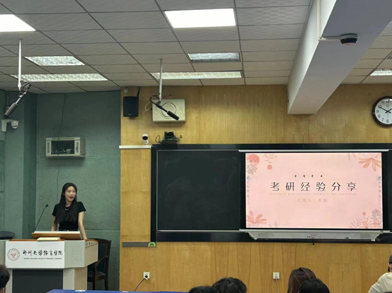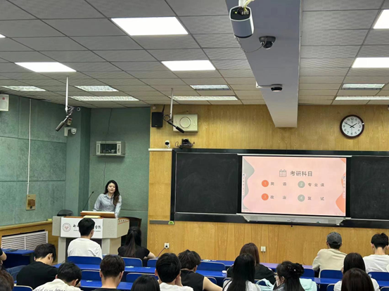 为了加强学生对考研的认识和了解,进一步明确考研规划,挖掘自身潜能,营造良好的考研学习氛围。5月15日上午9点50分在阶梯教室101,我系举办了“研途助力,时光不负”考研心得分享会。我系副主任陈利峰、辅导员吴昊、21级全体学生参加本次会议。