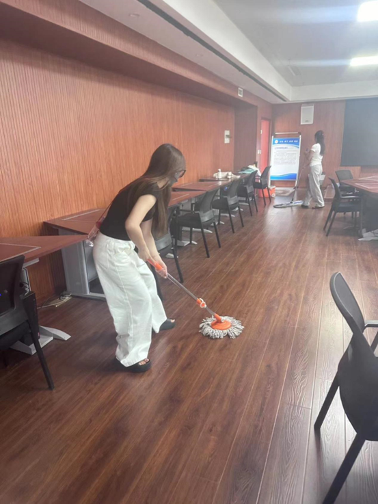 活动期间,同学们积极投身到各项劳动任务中。他们拿起扫帚、抹布等劳动工具,对舞蹈教室、楼道、宿舍等场所进行了全面的清扫和整理。此外,我系还组织了校园环保宣传活动,通过各班级群内通知,发放宣传资料等方式,向同学们普及环保知识,提高大家的环保意识。