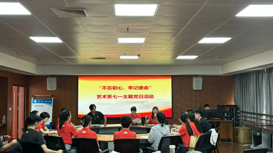 在七一建党节即将来临之际,为了深入学习贯彻习近平新时代中国特色社会主义思想和党的二十大精神,2024 年 6 月 25 日,我系在图文信息楼601成功举办了“不忘初心、牢记使命”主题党日活动。活动由我系党总支书记王万莉主持,我系全体党员师生参加了本次活动。活动上,我系党总支书记王万莉首先发表了热情洋溢的讲话,强调了此次主题党日活动的重要意义,鼓励全体党员师生在新时代坚守初心,勇担使命,为党和国家的教育事业以及艺术文化的传承与创新贡献力量。活动现场还组织了党员师生重温入党誓词仪式。面对鲜红的党旗,全体党员师生举起右拳,庄严宣誓,铿锵有力的誓言在活动现场回荡,彰显了党员师生们不忘初心、为共产主义事业奋斗终身的坚定决心。