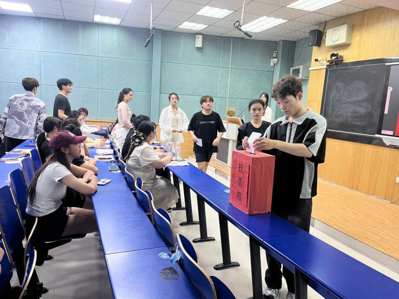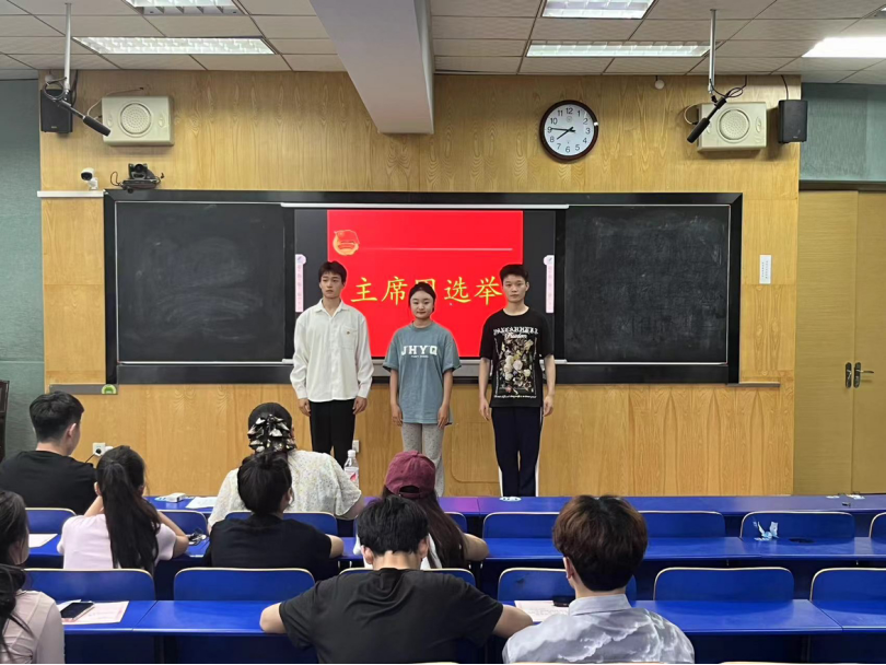 会中,主席团候选人及各部门部长候选人进行竞选演讲,演讲结束后大家进行投票选举。