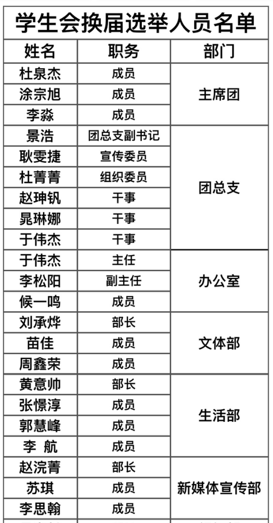 本次学代会监票人:景浩,唱票人:杜菁菁,计票人:耿雯捷。