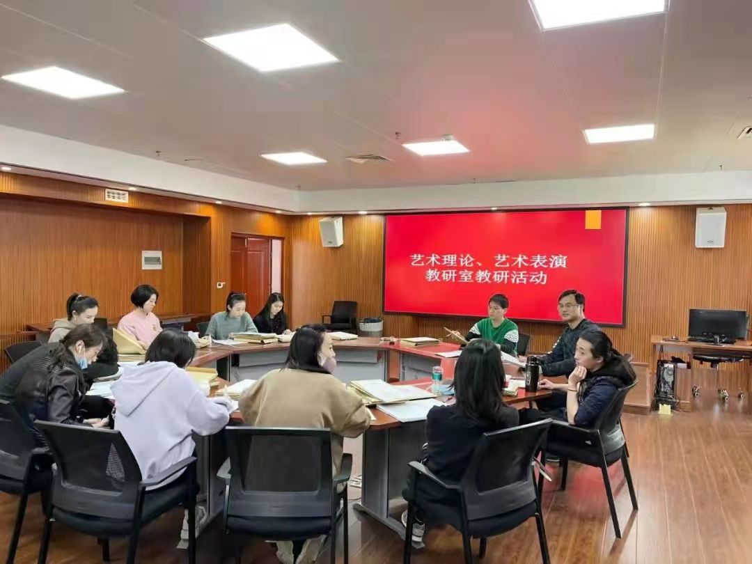 4月7日12:30我系表演教研室和音乐理论教研室在图文信息楼艺术系音视频编辑实训室进行教研活动。本次活动主题为整理规范教学材料活动。副主任陈利峰,表演教研室和音乐理论教研室全体教师参加会议。