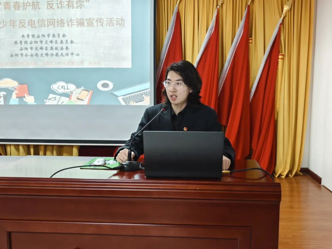 为了提高辖区青少年的反诈意识和反诈能力,有效减少电信网络诈骗案件的发生,刘少坤主动对接共青团安阳市委、文峰区政法委及安阳市公安局文峰分局反诈中心,共同举办了“青春护航,反诈有你”文峰区青少年反电信网络诈骗宣传活动。安阳市青年讲师团讲师、青年宣讲轻骑兵刘少坤向大家普及了电信网络诈骗的常用手法和防范措施,详细讲解了如何识别诈骗电话、短信和网络链接,以及如何保护个人隐私和财产安全。此外,多次组织志愿者去小区进行反诈宣传和海报讲解等。