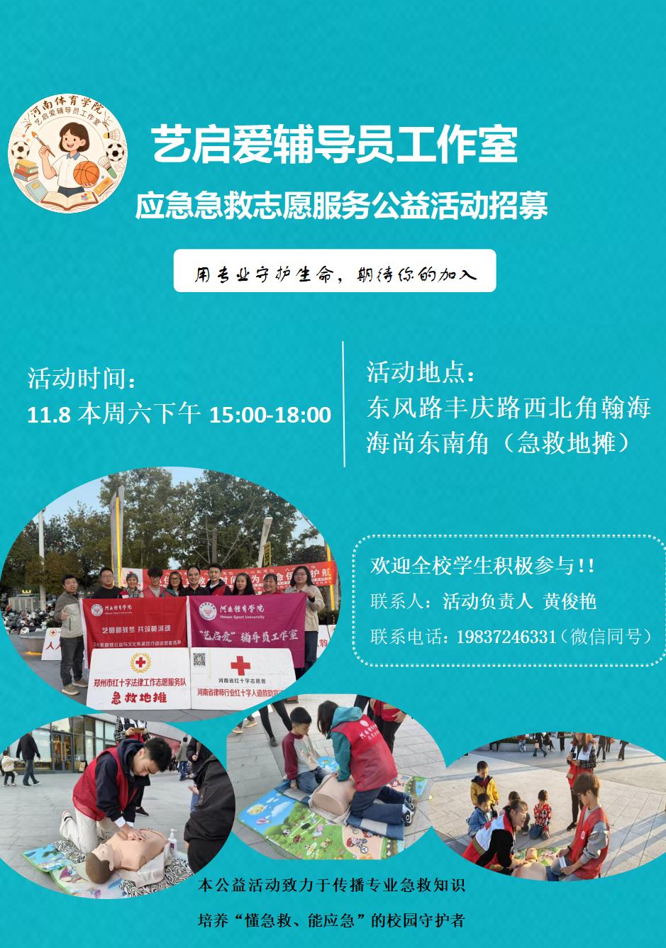 艺启爱辅导员工作室本周六应急急救地摊公益活动招募啦|用专业守护生命,期待你的加入!