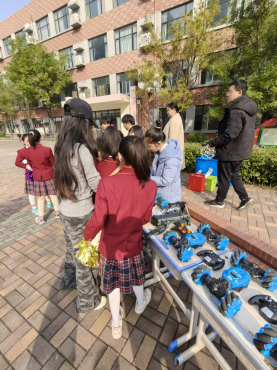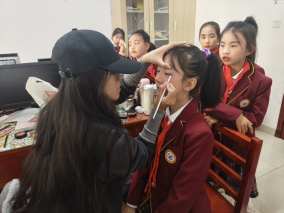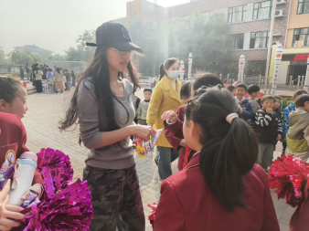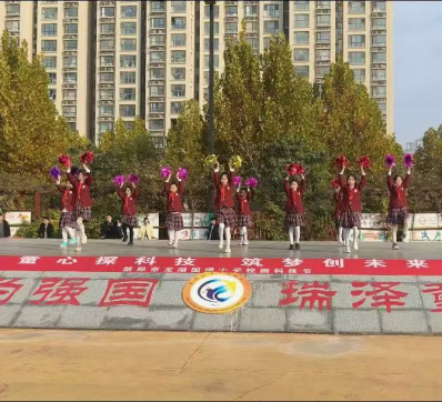 新郑市龙湖国瑞小学的校园科技节活动上,支教学生赵翊彤成为了舞台上的“幕后功臣”。为给科技节开场增添亮点,她结合自身艺术专业优势,为孩子们量身编排出一支充满青春活力的啦啦操舞蹈。从动作设计到队形编排,她充分考虑孩子们的肢体协调性,一遍遍带领学生练习、打磨细节。科技节当天,孩子们身着统一服装,伴随着欢快的音乐跳出整齐优美的舞蹈,灵动的舞姿不仅点燃了科技节的现场氛围,更让孩子们在舞台上收获了自信与掌声。