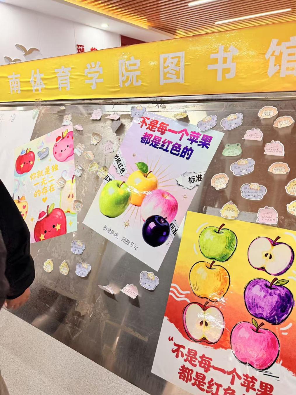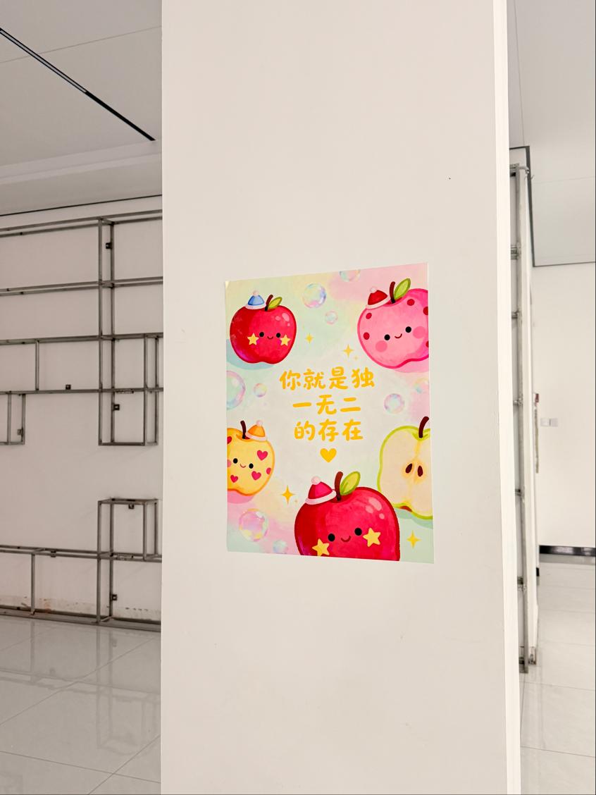 为提升活动知晓度,艺术系积极开展宣传工作。线上通过官方公众号推送,以简洁文字搭配学生原创插画,介绍心理健康小知识;线下在教学楼入口、图书馆一站式悬挂“你就是独一无二的”主题海报,在田径场通过横幅来宣传心理健康知识,营造出温馨的活动氛围。