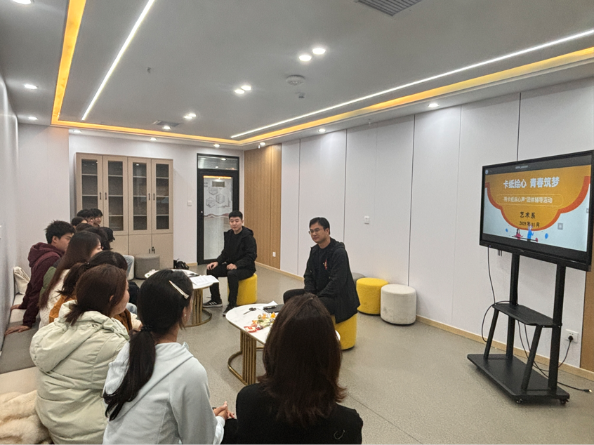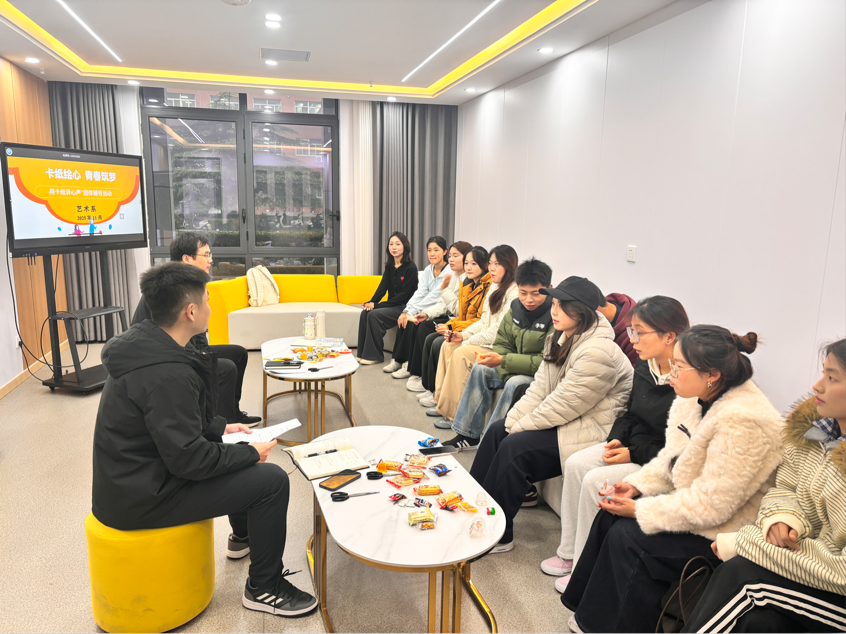 为切实破解学生在人际交往、恋爱情感及集体生活中的心理困惑,11月6日下午,艺术系以“心光引路,青春启航”为核心主题,开展了一场“卡纸绘心,青春筑梦”的团体辅导活动,让心理健康教育在艺术表达中落地生根。此次活动由艺术系副主任陈利峰,艺术系辅导员吴昊及各年级学生代表共同参与。