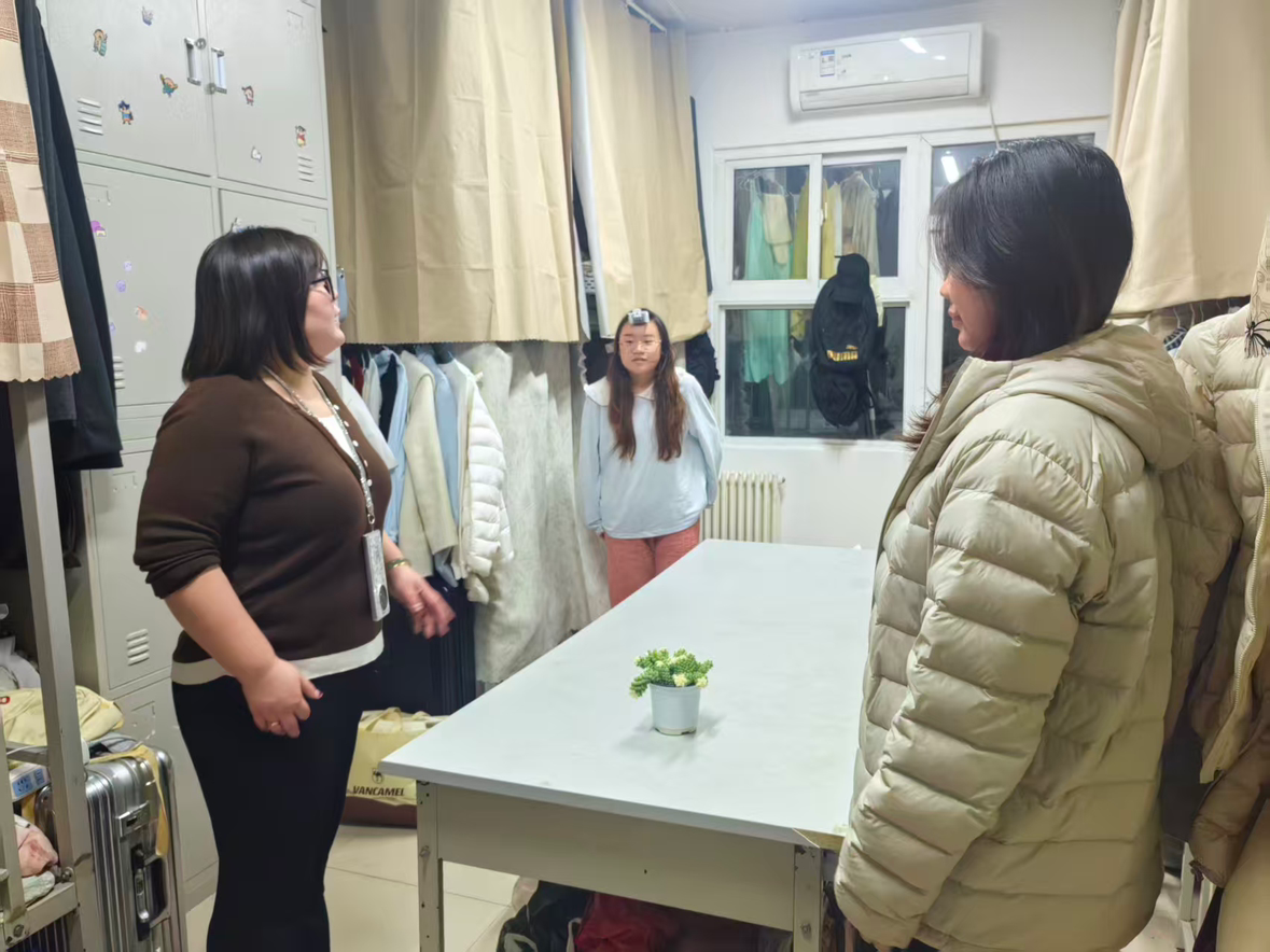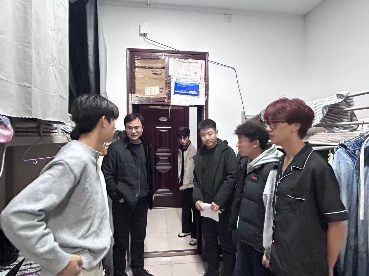 走访期间,老师们还与学生亲切交流,耐心倾听学习生活中的困惑与需求,叮嘱大家注意用电安全、遵守宿舍管理规定,鼓励同学们互帮互助、共同营造和谐友爱的宿舍氛围。