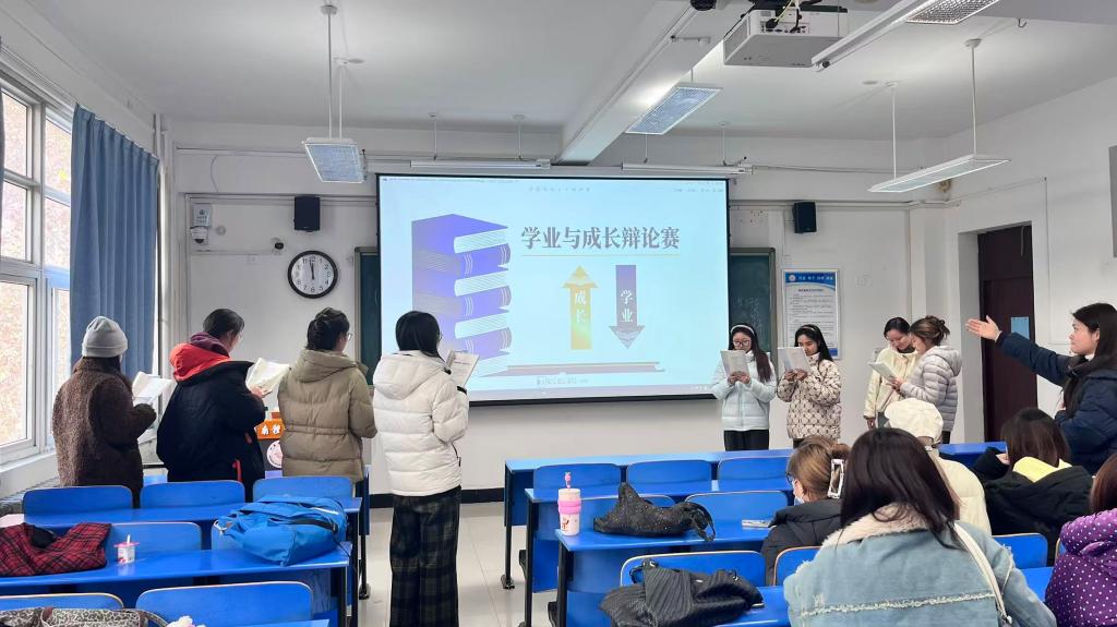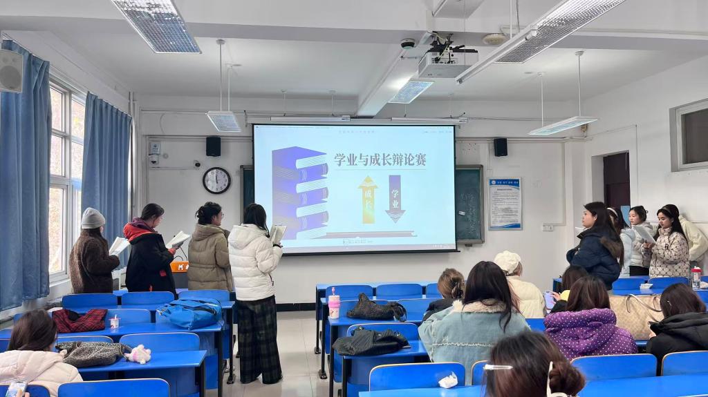 10月31日下午5点,由“艺启爱”辅导员工作室主办的学业与成长辩论赛在302教室顺利开展。本次比赛聚焦大学生学业规划与个人成长的关联议题,吸引了多个班级的辩论爱好者组队参赛。