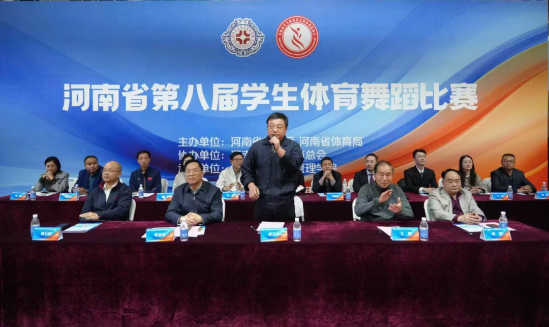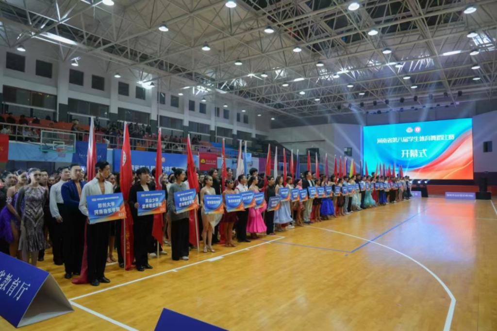 2024年10月25日-26日,由河南省教育厅、河南省体育局主办的“河南省第八届学生体育舞蹈比赛”在郑州升达经贸管理学院隆重举行。来自全省各高校的37所代表队的1413名同学参加本次比赛。河南省教育厅体卫艺处舒卫方处长、中国学生体育联合会大学生体育舞蹈分会蒋远松副秘书长、河南省学生体育总会副主席王晏教授等领导出席本次大赛开幕式。