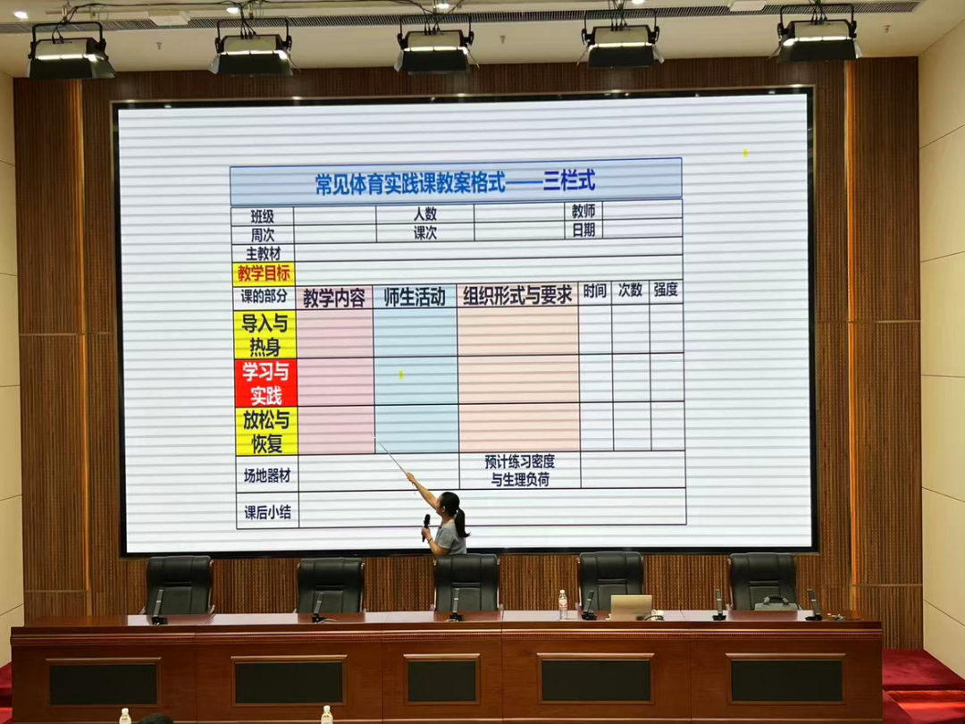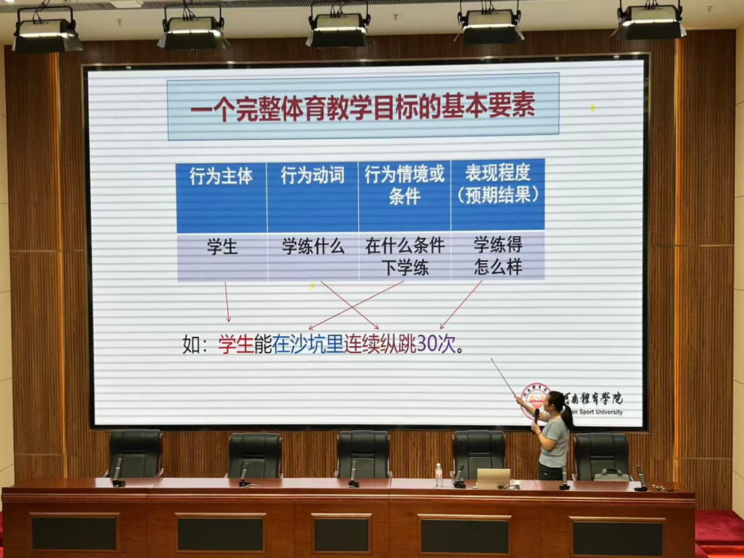 为提升我系2022级学生实习实践能力,助力其更好应对中小学教学场景,9月15日下午,我系特邀请河南体育学院体育理论教研室主任、副教授樊姝皎,开展以“中小学体育课教案的撰写”为主题的实习培训专题讲座。