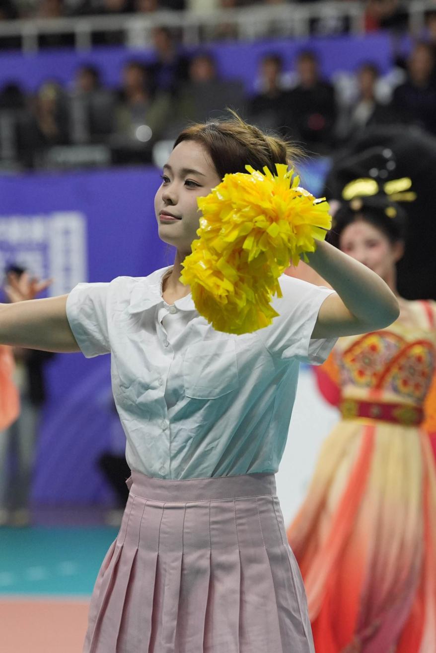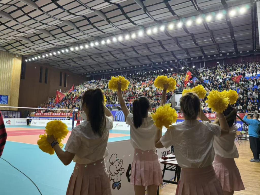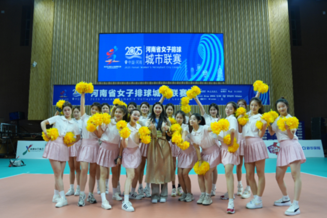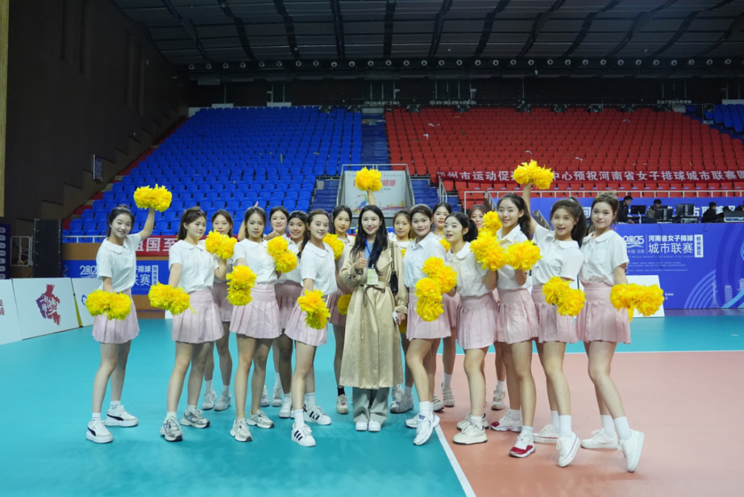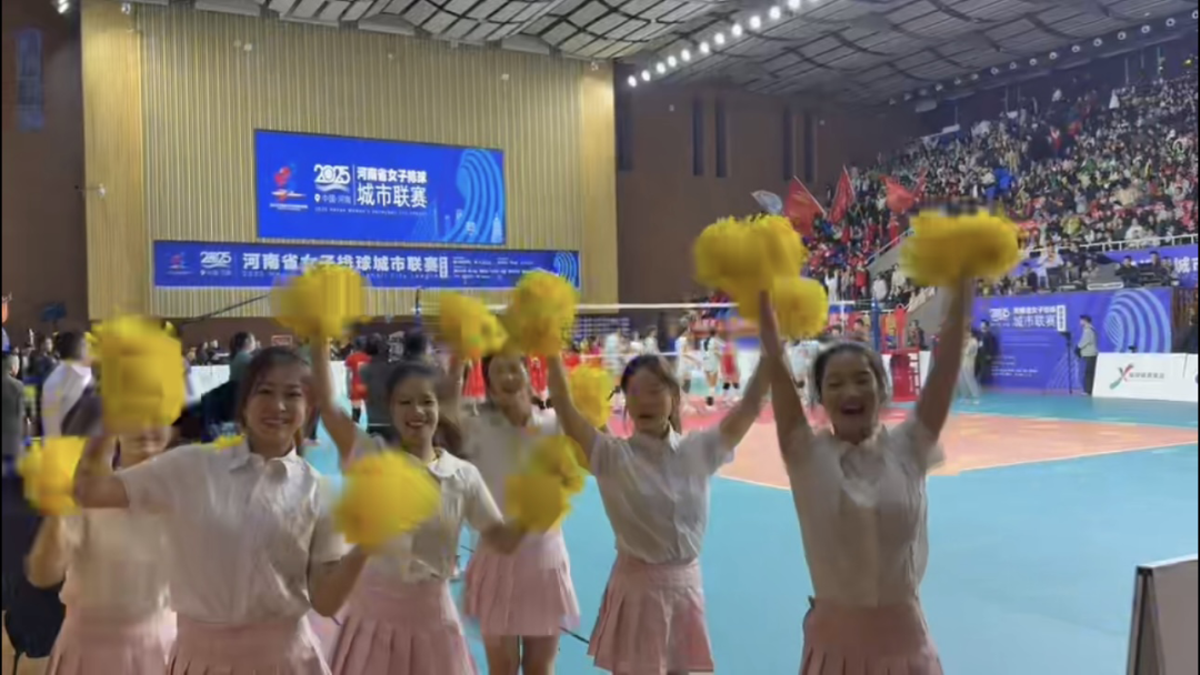 2025年河南省女子排球城市联赛第二阶段赛事于10月10日下午在郑州、商丘、周口、开封四地同时开赛,我系艺术团啦啦队受邀参与郑州体育馆赛场开幕式表演。此次表演由艺术系教师徐若男指导,我系队员以极具张力的动作、饱满的热情,为郑州队与洛阳队的巅峰对决助威。赛事开始,队员们将青春活力与艺术创意融入每一支舞蹈,与赛场观众的呐喊、球员的精彩对抗交织,为赛事注入别样活力,成为赛场上一道靓丽风景线,助力2025河南女排城市联赛掀起排球与文体融合的新热潮。