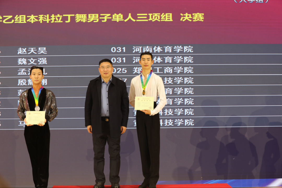 本次比赛艺术表演教研室主任徐卓亚担任执行裁判长,艺术表演教研室教师高震宇担任裁判员。我校代表队共派出34名队员参赛。赛场上,队员们凭借扎实的专业功底、默契的搭档配合,在激烈角逐中脱颖而出:最终斩获14金9银4铜、5项第四名、1项第五名、3项第六名、5项第七名、1项第八名,总计42项奖项,其中院体育舞蹈队朱浩艺&高智慧组合包揽大学乙组本科拉丁舞五项组、单项桑巴组、单项牛仔组、单项狐步组、单项快步组五项冠军;院体育舞蹈队赵天昊&陈桢炀组合包揽大学乙组本科拉丁舞三项组、单项伦巴组、单项斗牛组三项冠军;院体育舞蹈队赵天昊还获得乙组本科标准舞男子单人五项组、拉丁舞男子单人三项组、男子单人六项全能组冠军。