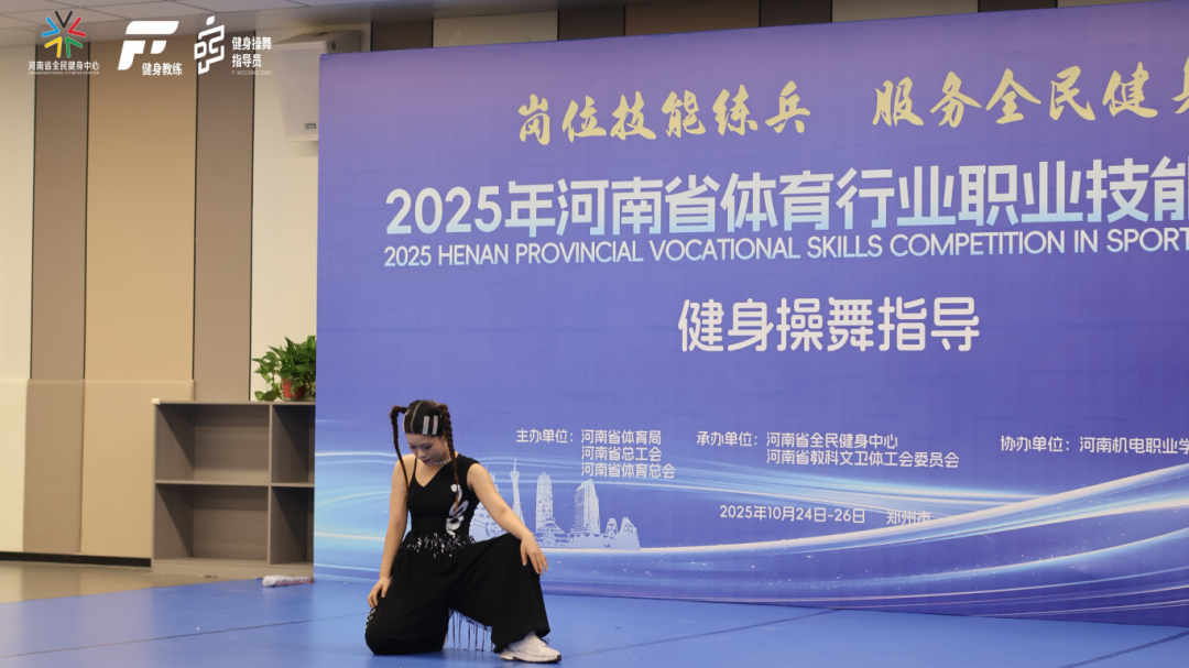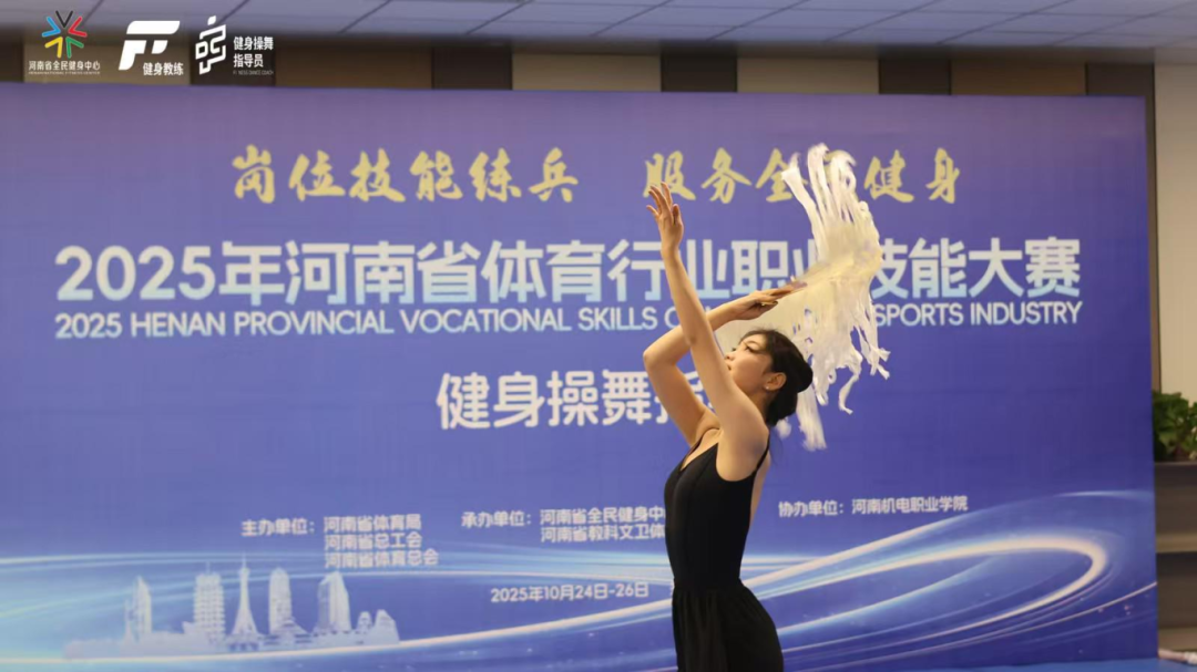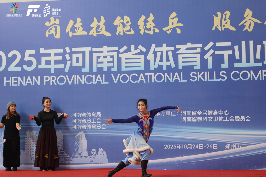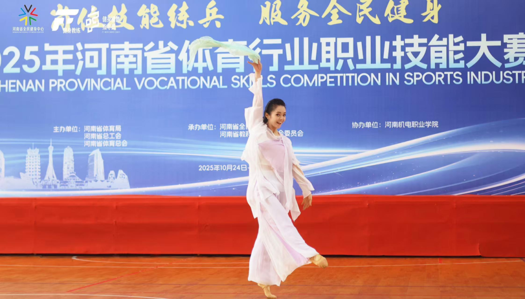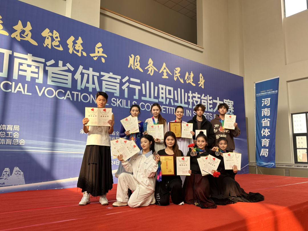 2025年10月26日,河南省体育行业职业技能大赛在郑州职业机电学院举行。艺术系参赛师生凭借扎实的专业功底和出色的现场表现,在健身操舞指导项目中成绩亮眼,最终斩获4金3银3铜和健身操舞团体第一名的佳绩。