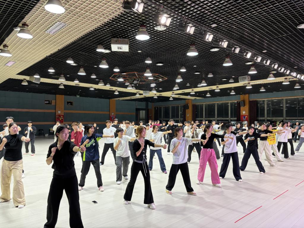 为丰富教学形式、深化教研成果,同时提升全校学生对操舞的兴趣,11月13日晚,我系在大学生活动中心举办特色团操公开课,由爱聚星团队联合授课,面向全校各院系学生开放,打造优质共享的课堂学习平台。