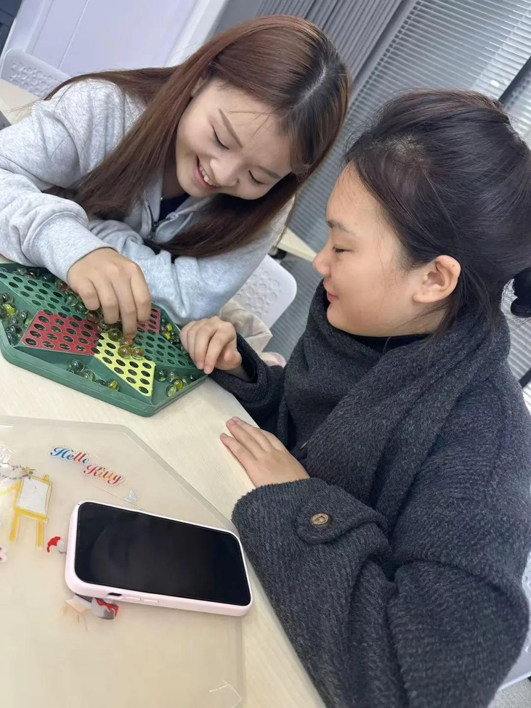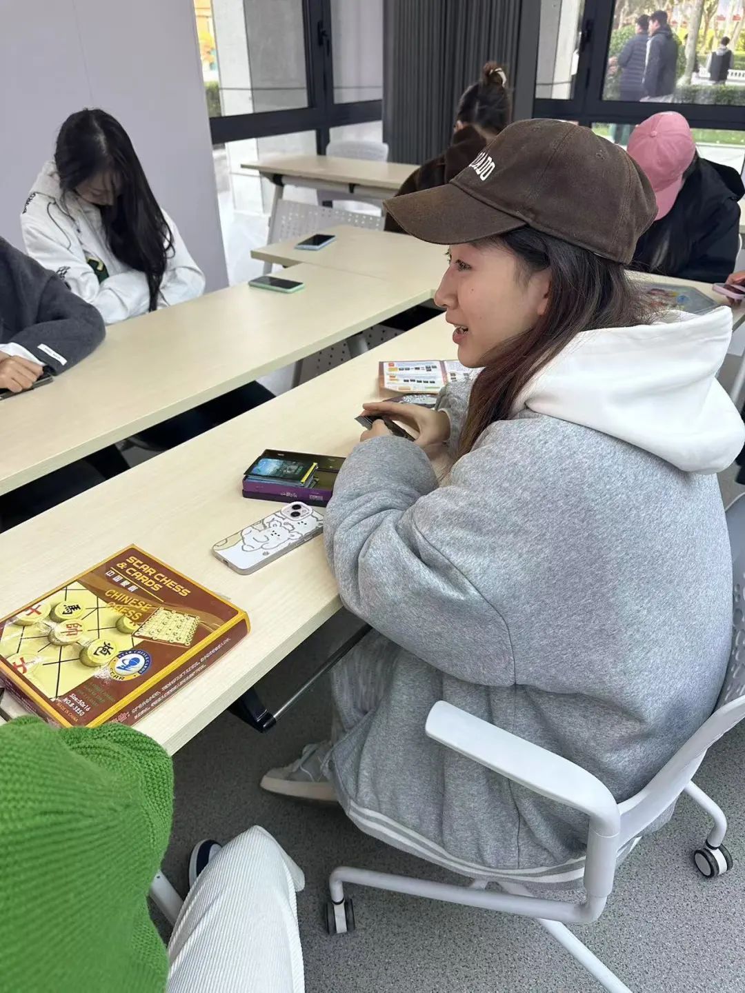 活动现场,同学们积极参与,热情高涨。飞行棋、围棋、五子棋等多种棋类游戏齐上阵,同学们或沉思冥想,或谈笑风生,整个活动现场洋溢着轻松愉快的氛围。