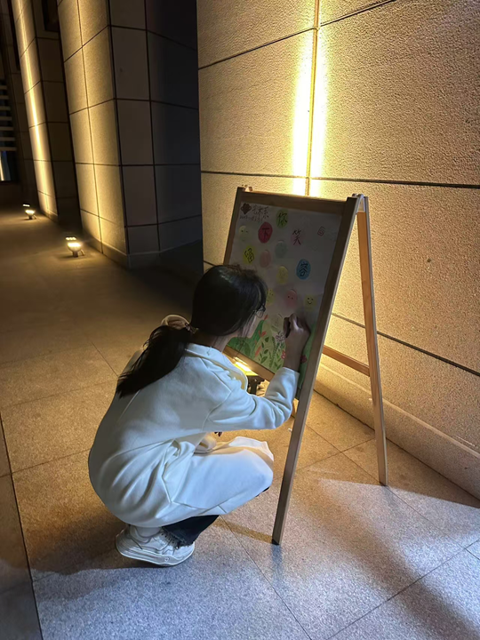 活动过程中,同学们在便利贴上记录自己的微笑,微笑是一种简单而又神奇的表达方式,它不仅仅是一种面部表情,更是一种积极的态度和心情体现。贴在系办墙上的海报,可以让我们感受到温暖和善意。