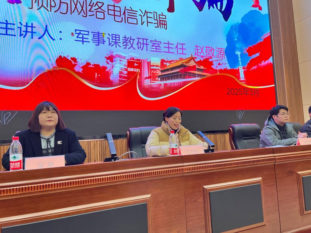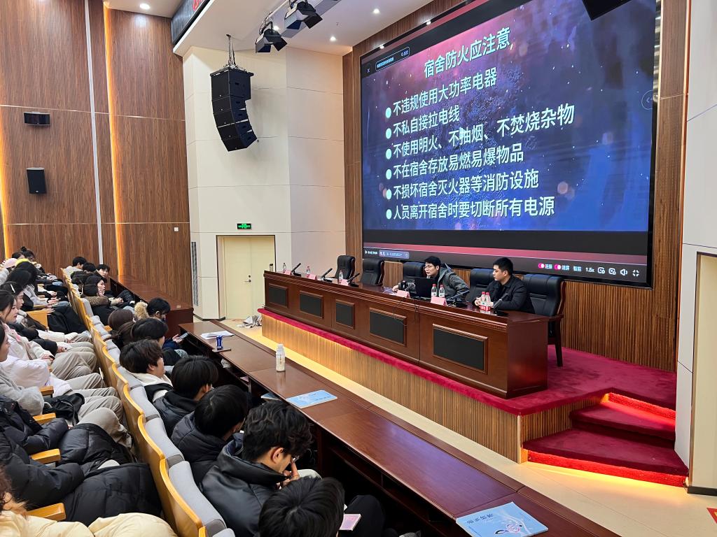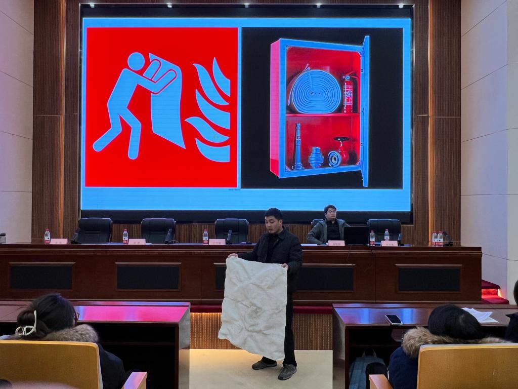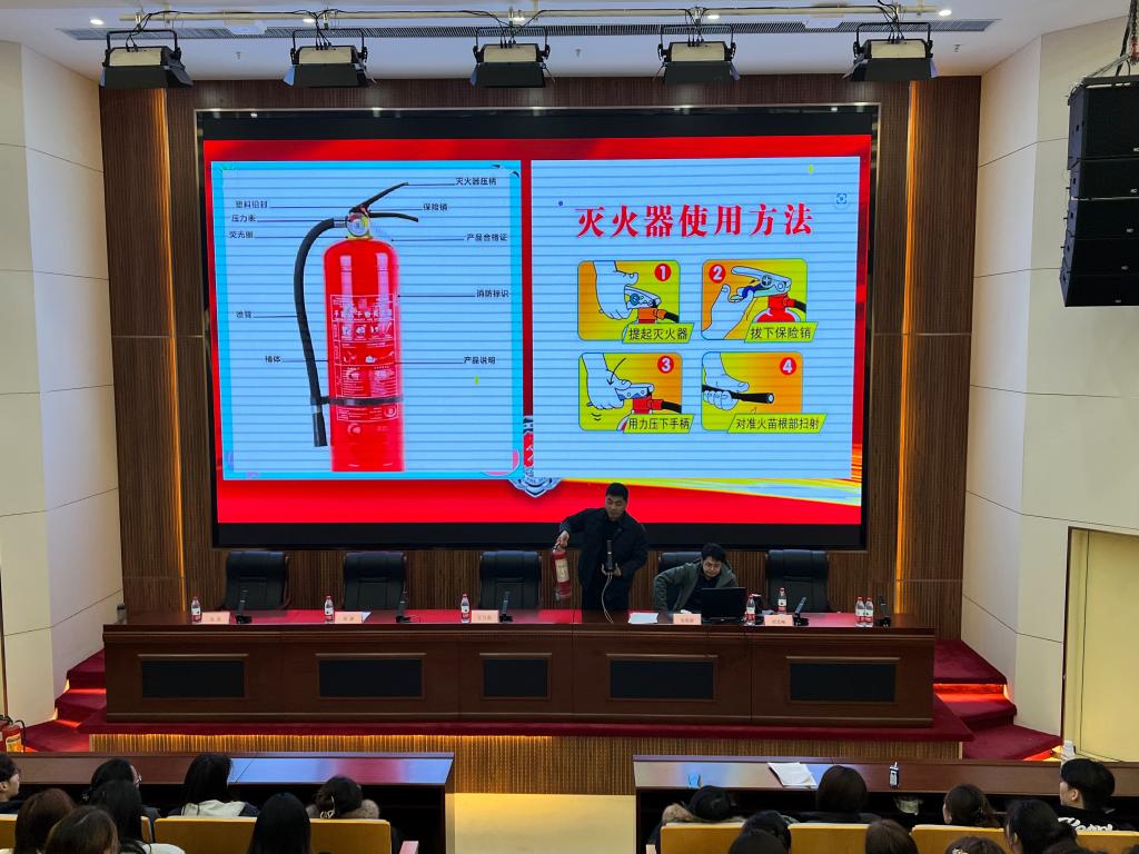 会议伊始,王万莉书记主持并发言,紧接着赵敬源主任围绕“消防安全、网络安全、防诈反诈”等主题为大家生动讲解真实案例,结合大学生受骗案例,揭露兼职刷单、冒充客服等常见骗术,并指导下载“国家反诈中心”APP;胡龙飚老师在现场演示灭火器、灭火毯、消防栓等消防器材的使用及逃生技巧,组织在场师生进行逃生演练。