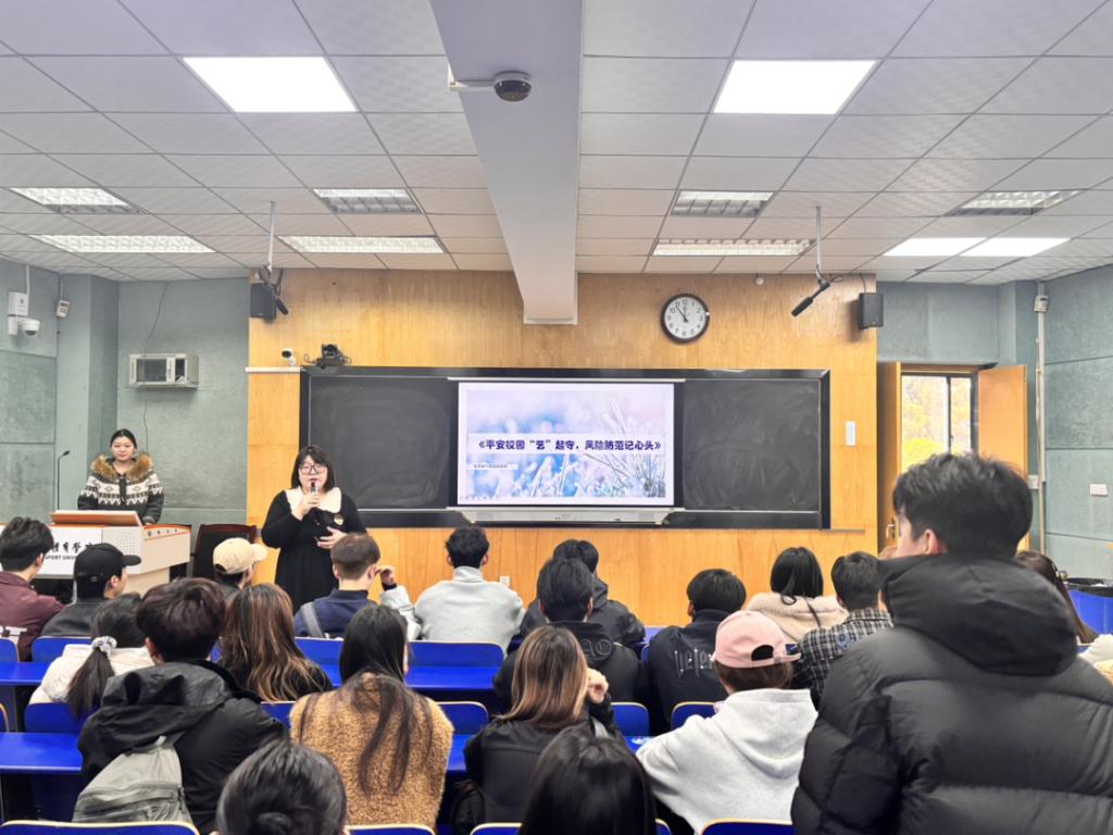 为全面筑牢校园安全防线,切实提升学生安全防范意识与应急处置能力,我系于10月20日至21日组织各班分两天集中召开校园安全主题班会。其中,23级、24级各班由辅导员张静老师主持,以线下会议为主,22级各班在辅导员吴昊老师的统筹下采用线上+线下相结合的形式开展,两位老师重点围绕“防范网络诈骗”“校园内骑行安全”“宿舍用电安全”“消防安全”“紧急情况处置”及“杜绝非法聚众”等核心内容,为全体学生上了一堂生动且实用的安全教育课。